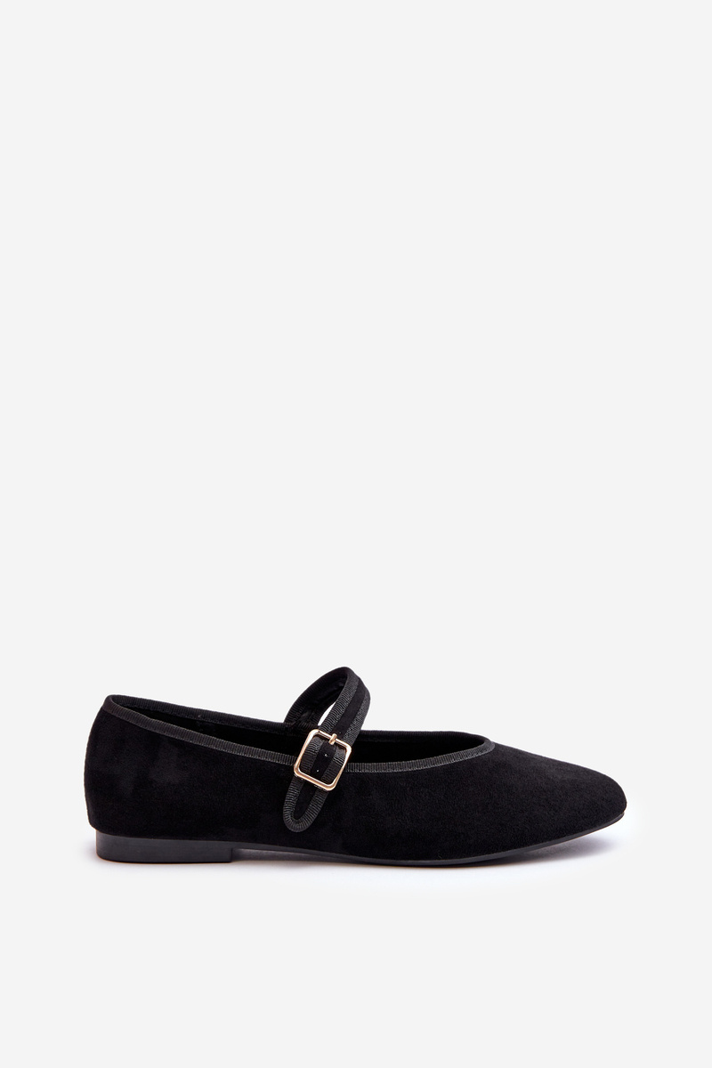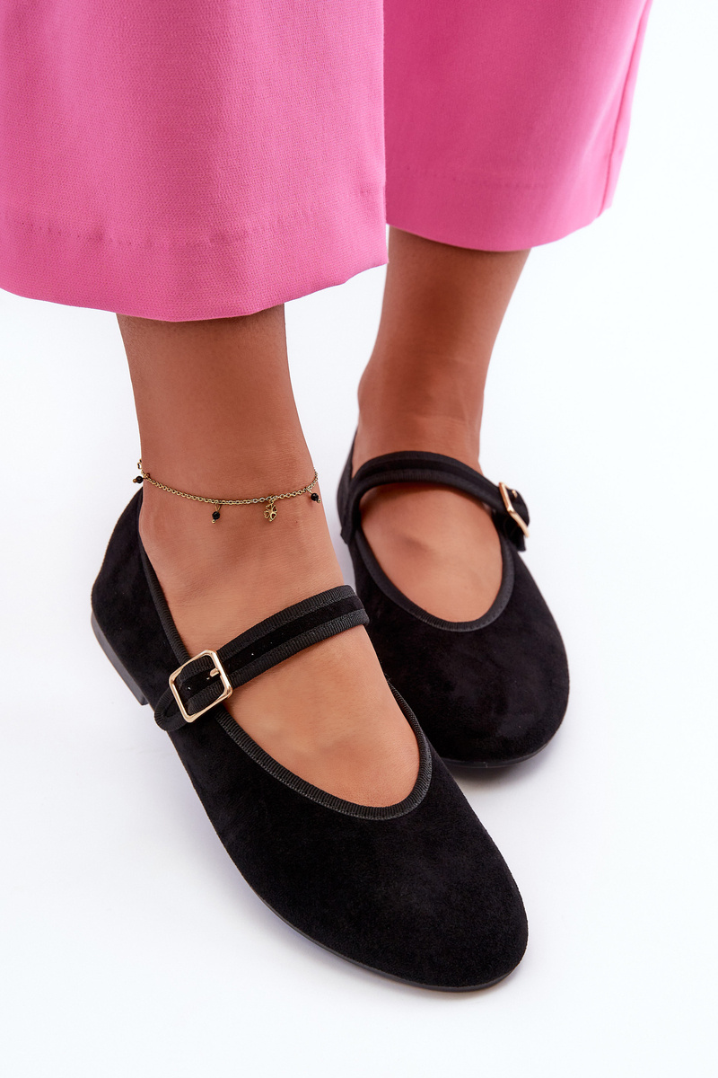 Black Eco-Suede Ballerina Flats with Buckle Anlofi