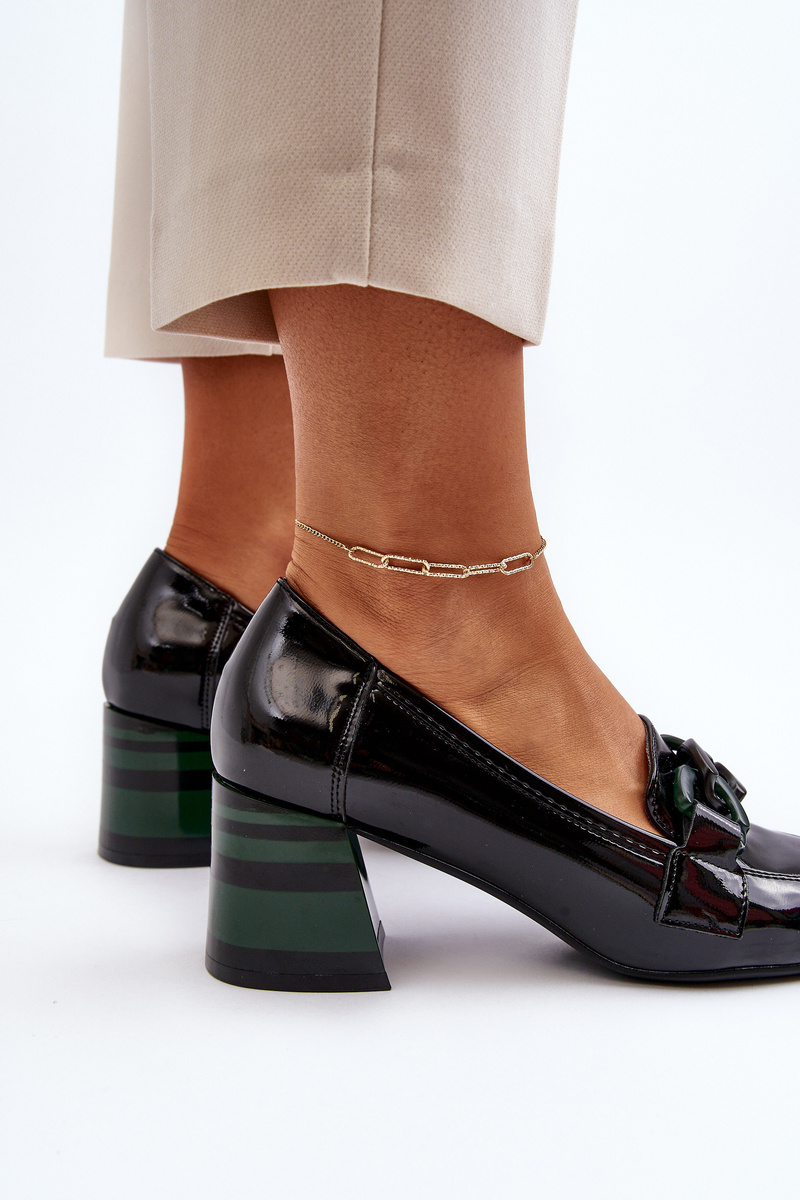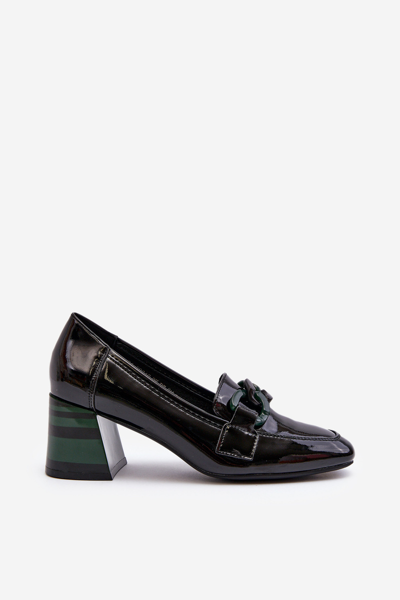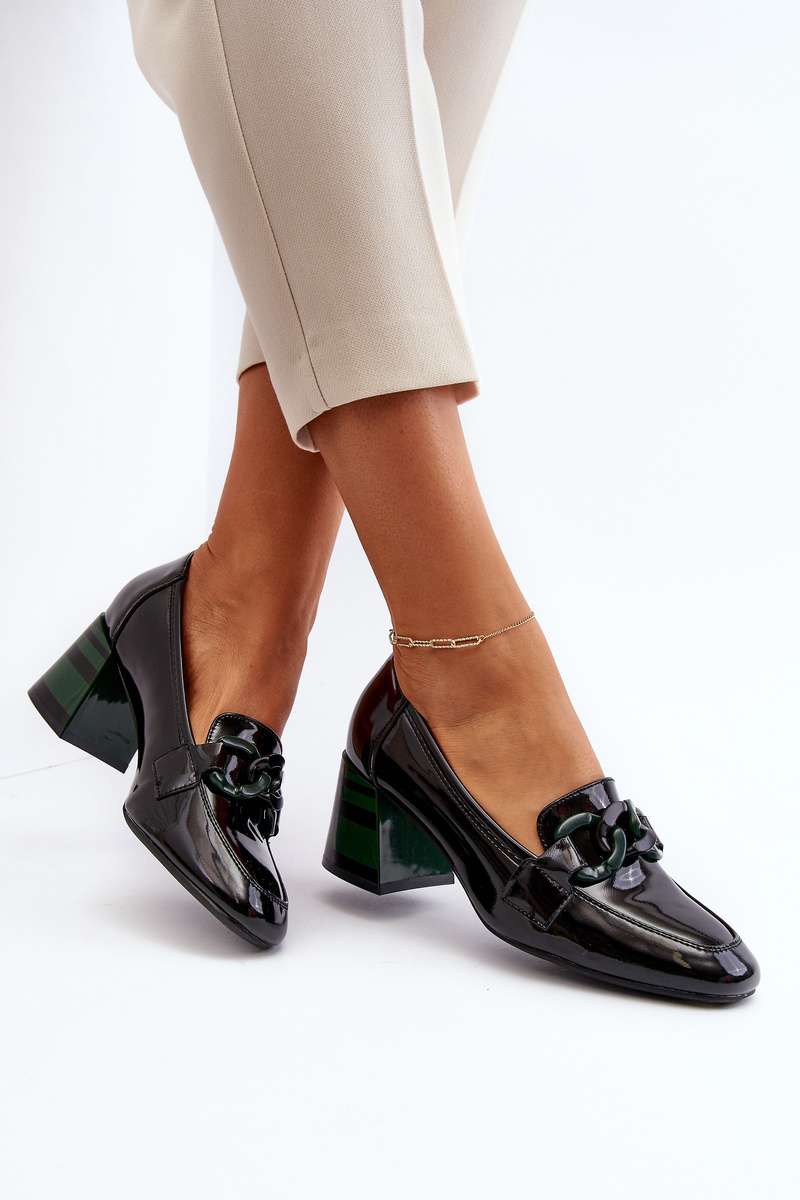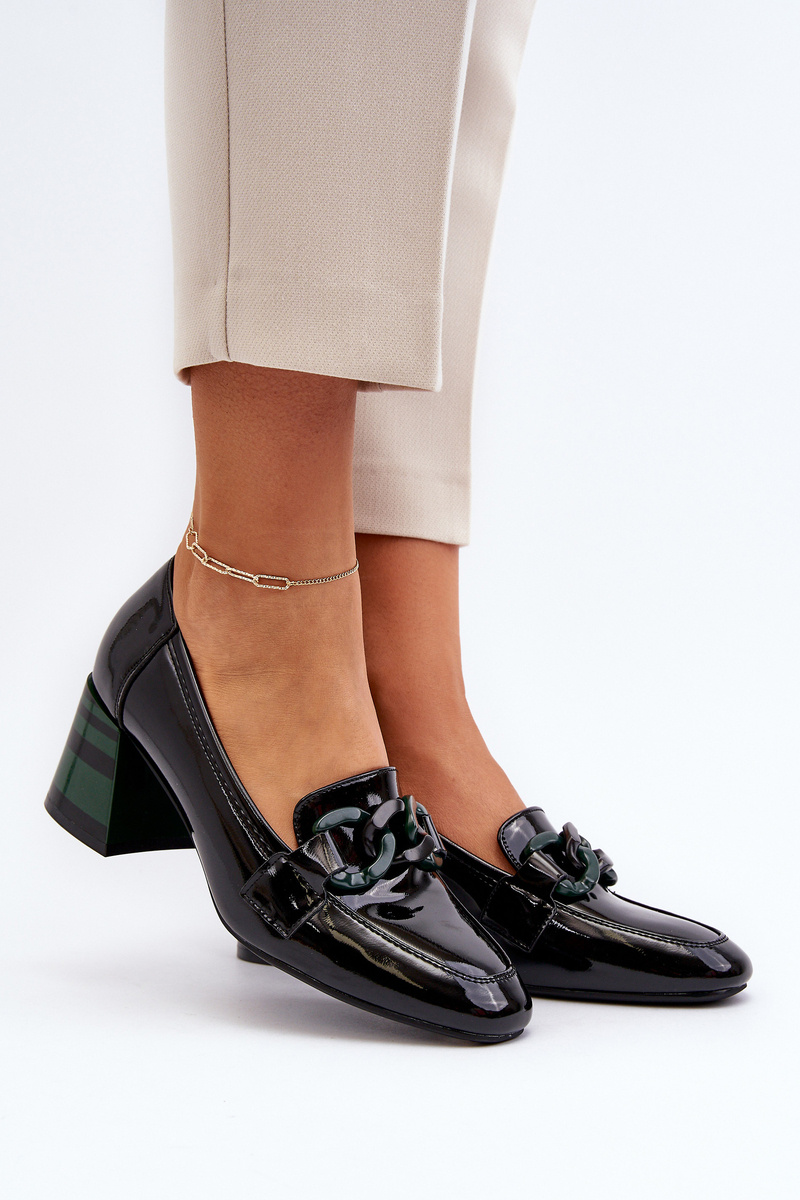 Black Patent Leather Pumps with Chain Paliotte