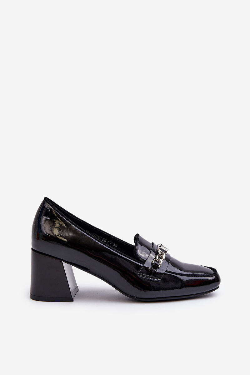Leather pumps should be in every woman's wardrobe. This model is set on a low, stable heel. The reinforced fastener provides additional stability and support for the foot, which is especially important during wear. There is a decorative strap at the front. Rounded toes. The natural leather insole ensures comfort during use. You definitely should have them! When choosing a size, please refer to the size chart.