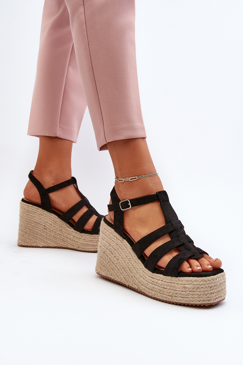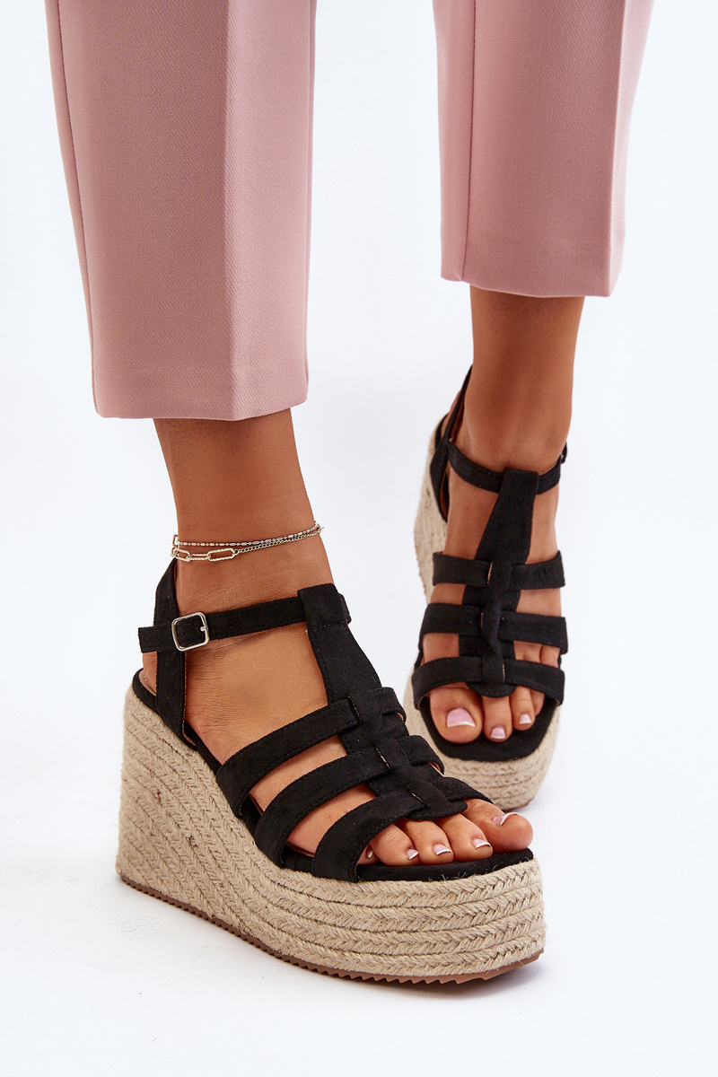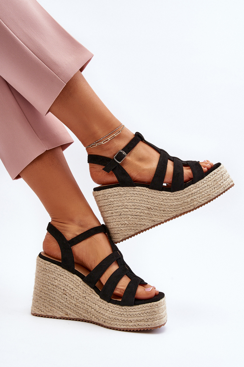 Black Wedge Sandals with Woven Strap Gnosis