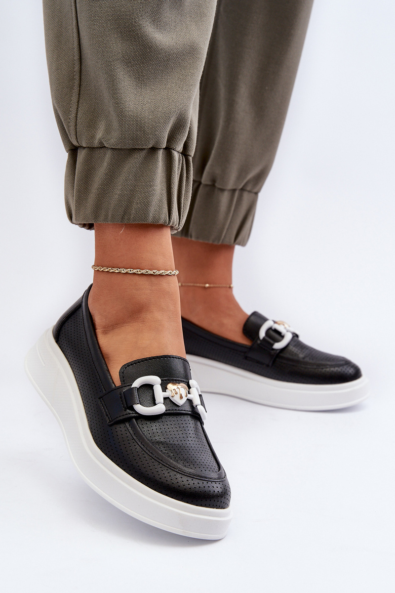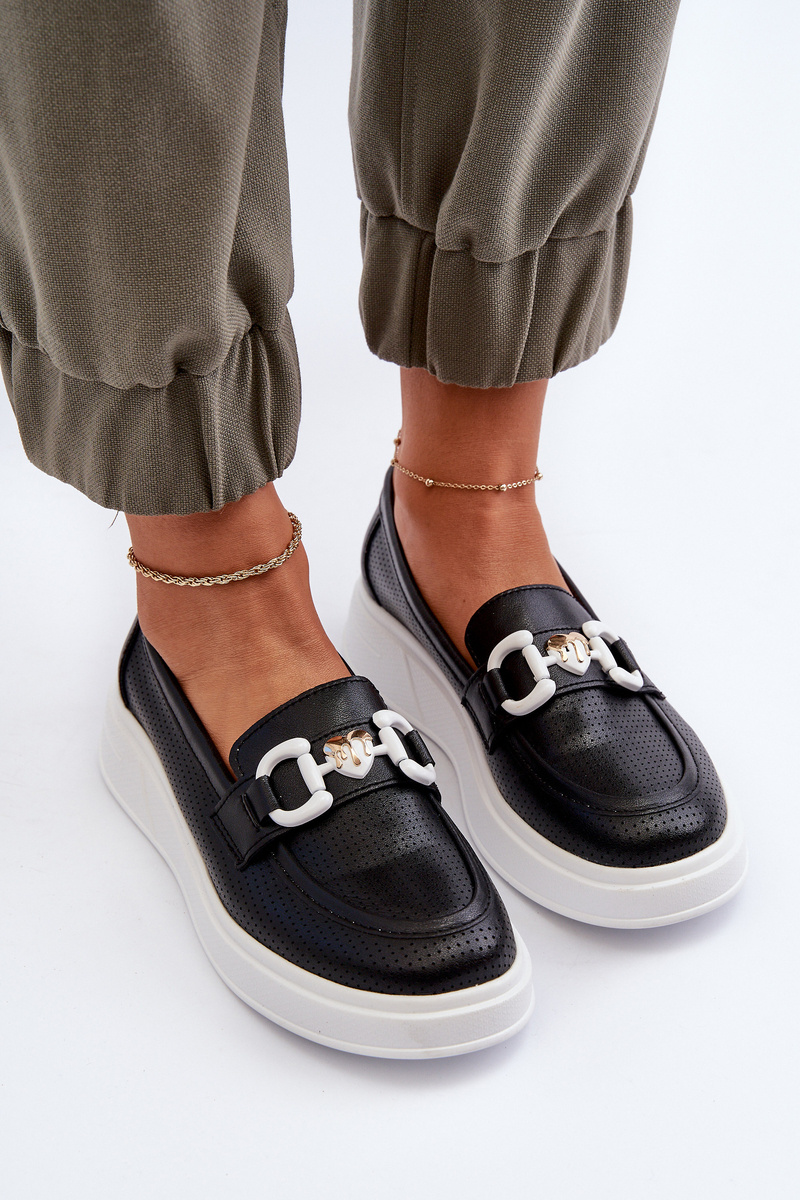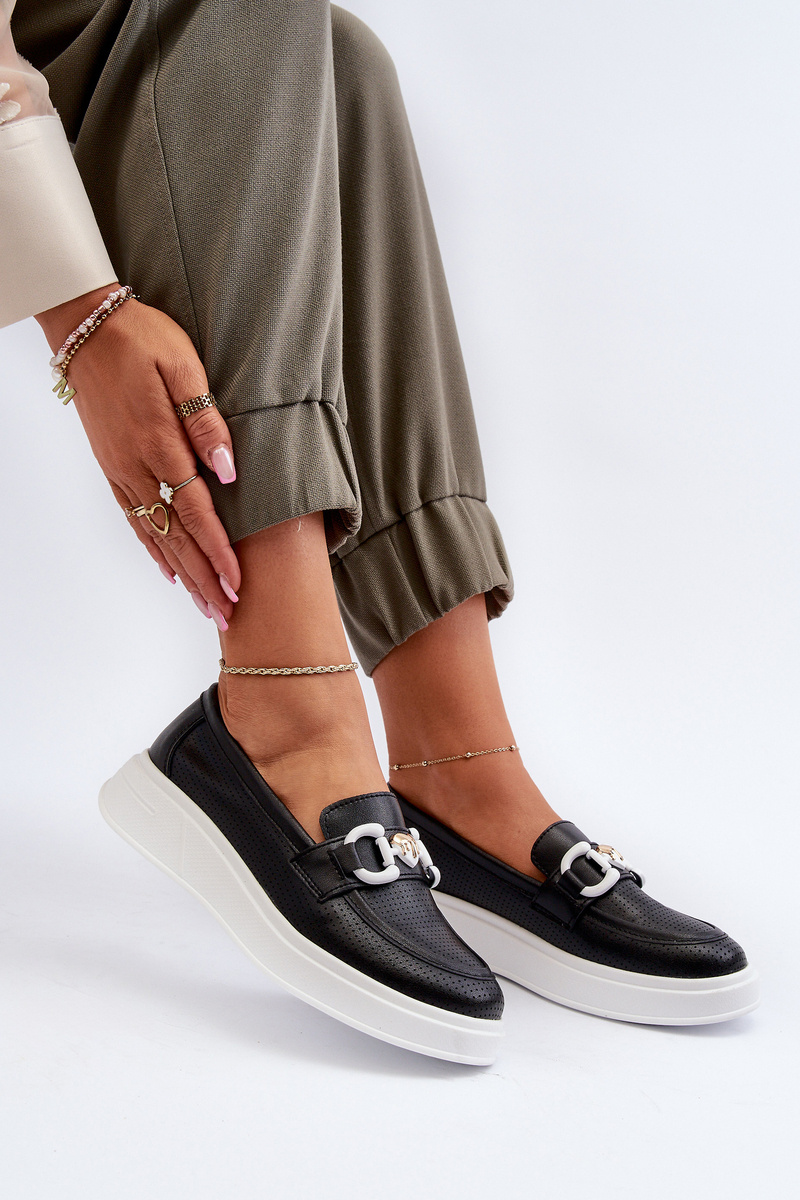 Black Women's Leather Platform Moccasins S.Barski LR720
