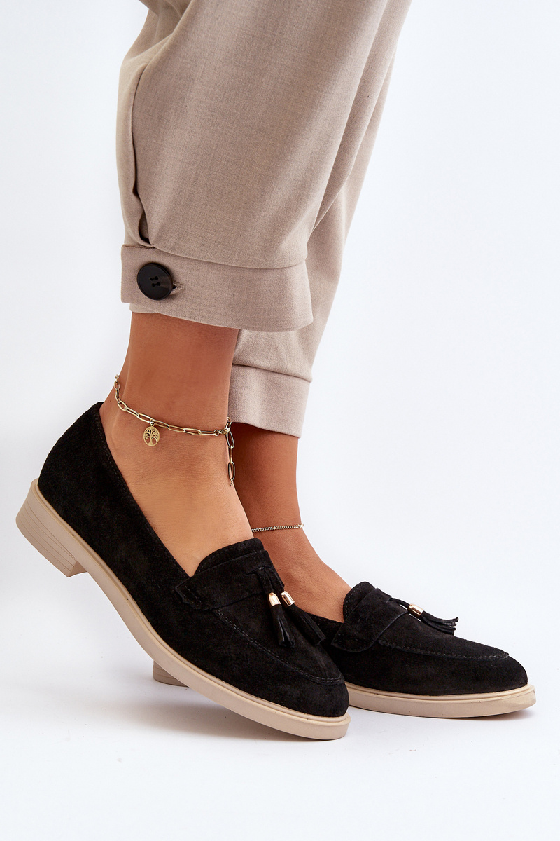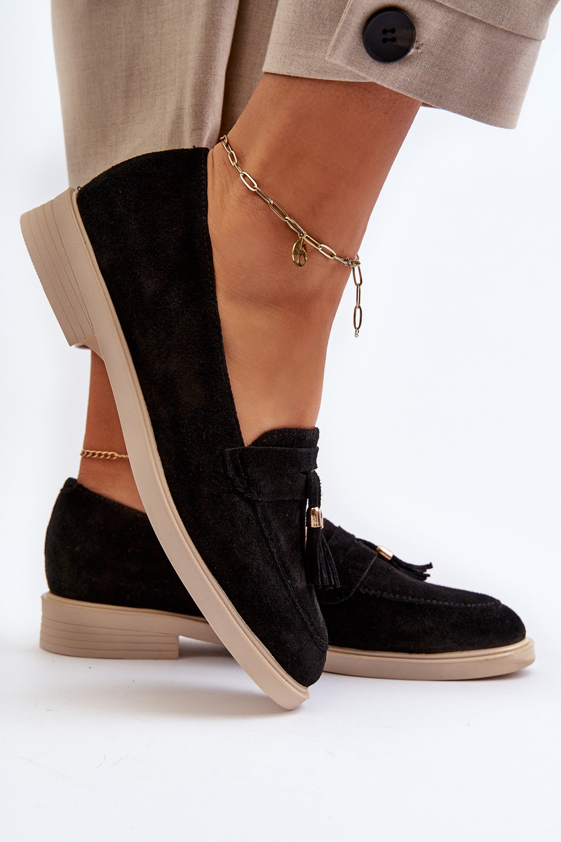 Black Women's Suede Moccasins with Flat Heel Zazoo 3420