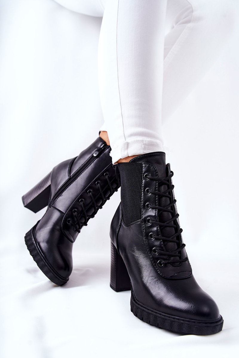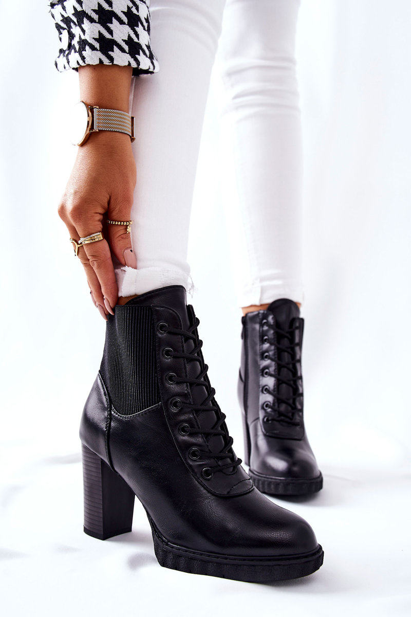 Exclusive open toe boots for women! Made of ecological leather with interwoven stripes on the upper. Fastened with a zipper. Mounted on a high post and platform that will lift and emphasize your figure. The insole is made of ecological leather. Get yourself a little extraordinary look!