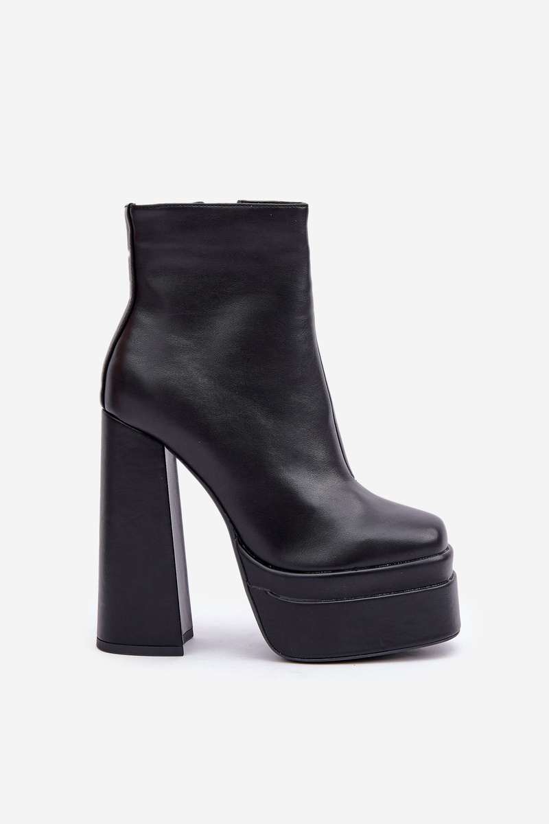 Women's ankle boots made of eco-leather, set on a massive platform and high heels, which add character to any outfit. The model with rounded toes ensures wearing comfort. The interior is insulated with a shoe blanket, perfect for cooler days. A practical zip closure makes putting them on easier. Stylish and comfortable, perfect for everyday wear and special occasions. When choosing a size, please refer to the size chart.