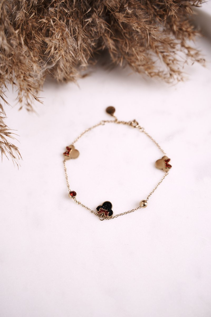 Bracelet With Pendants Red Cubic Zirconia Gold Minnie