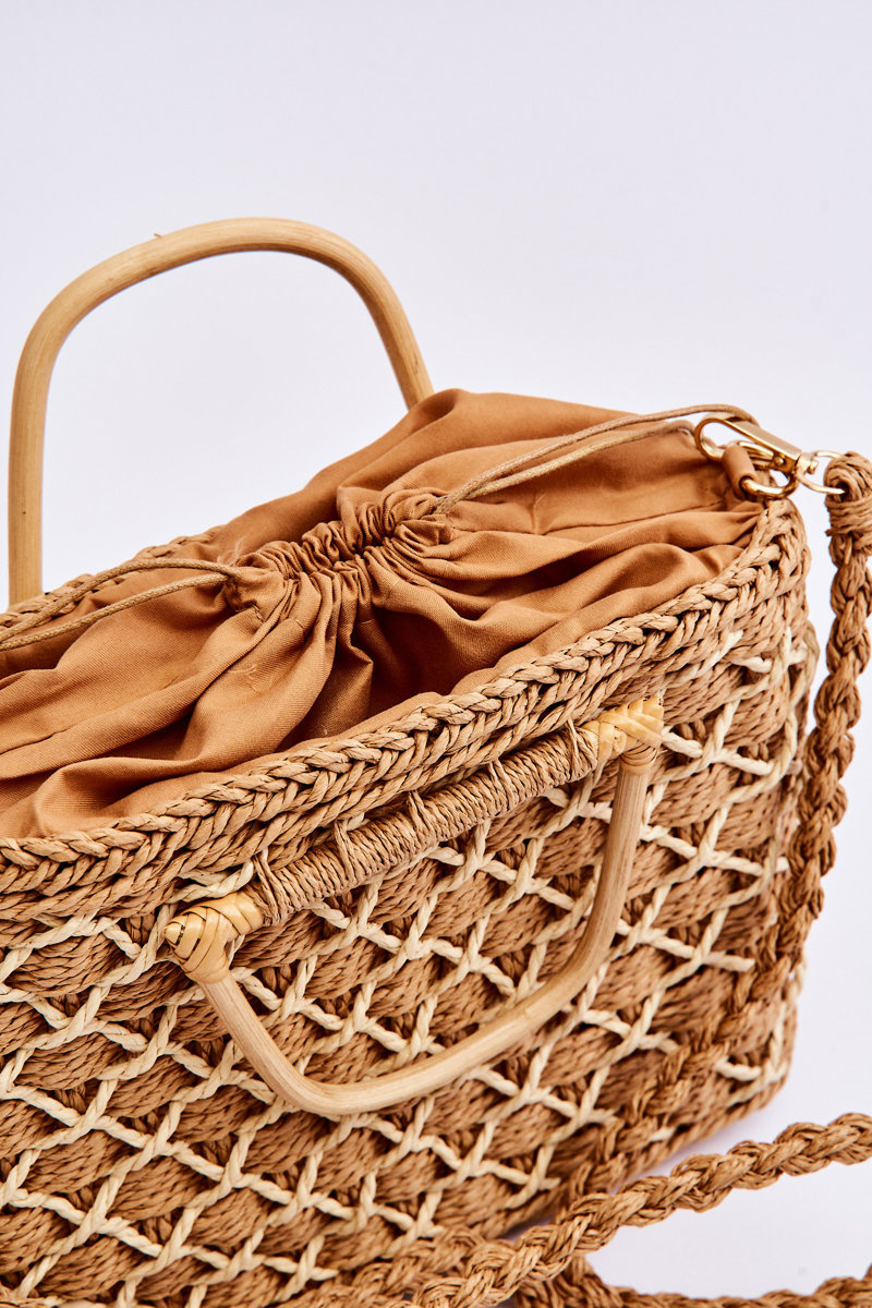 The perfect bag for the summer! It is made of 100% woven paper on the outside and 100% polyester on the inside. The bag inside has an open pocket and is closed with a drawstring. The bag has stiff ears and a paper, detachable strap.