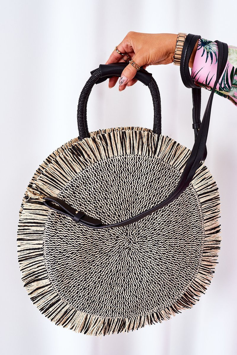 Braided Round Bag BRUNO ROSSI Black-Beige