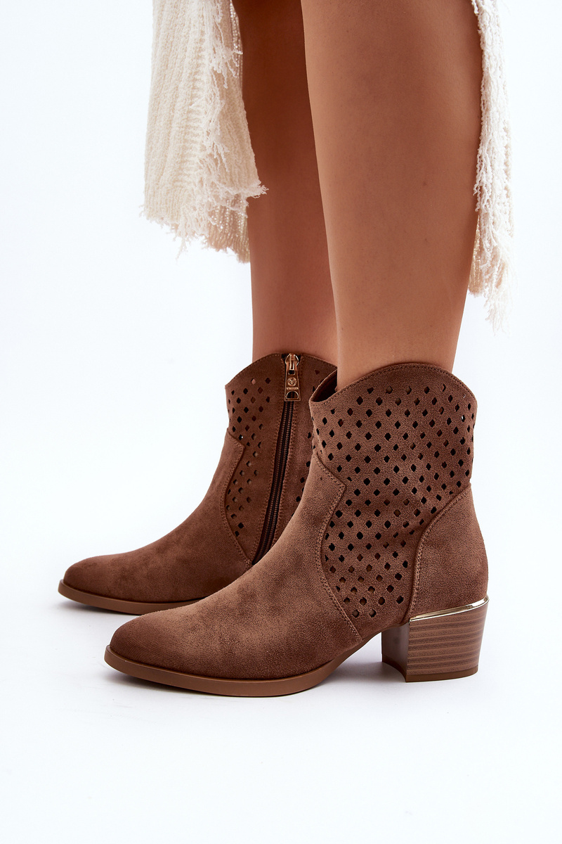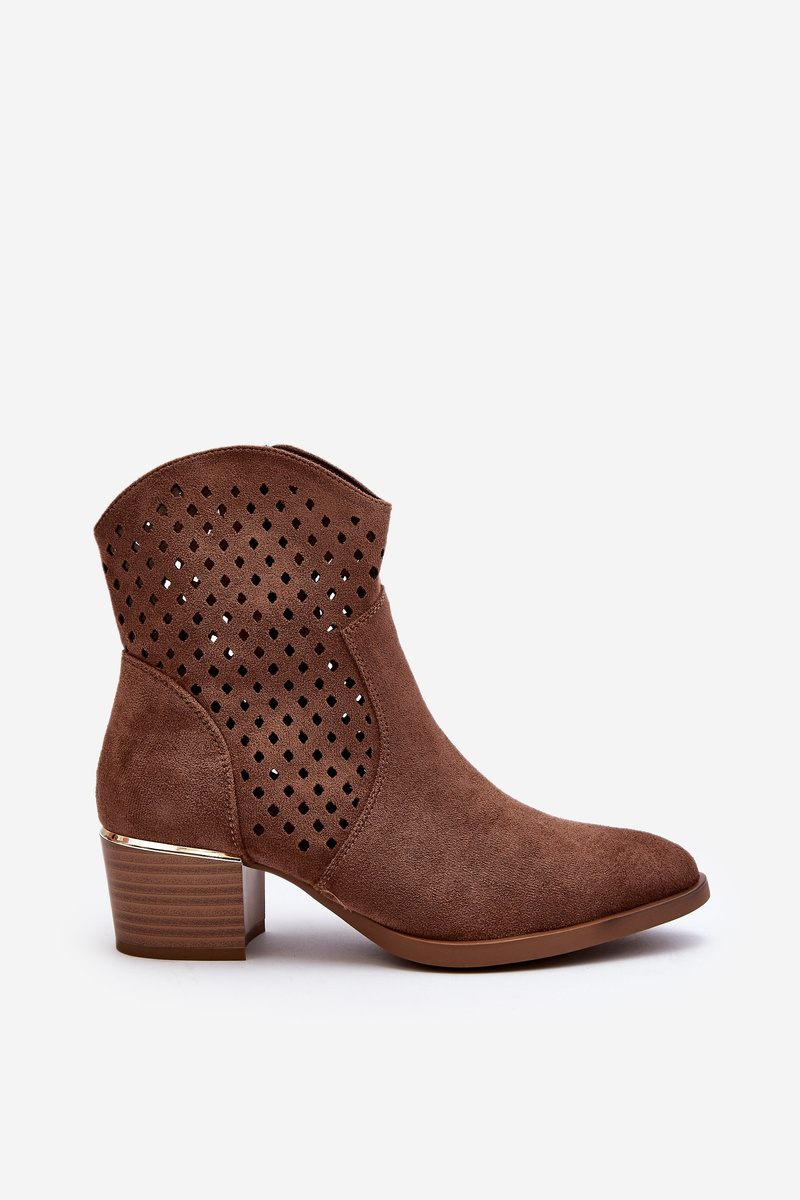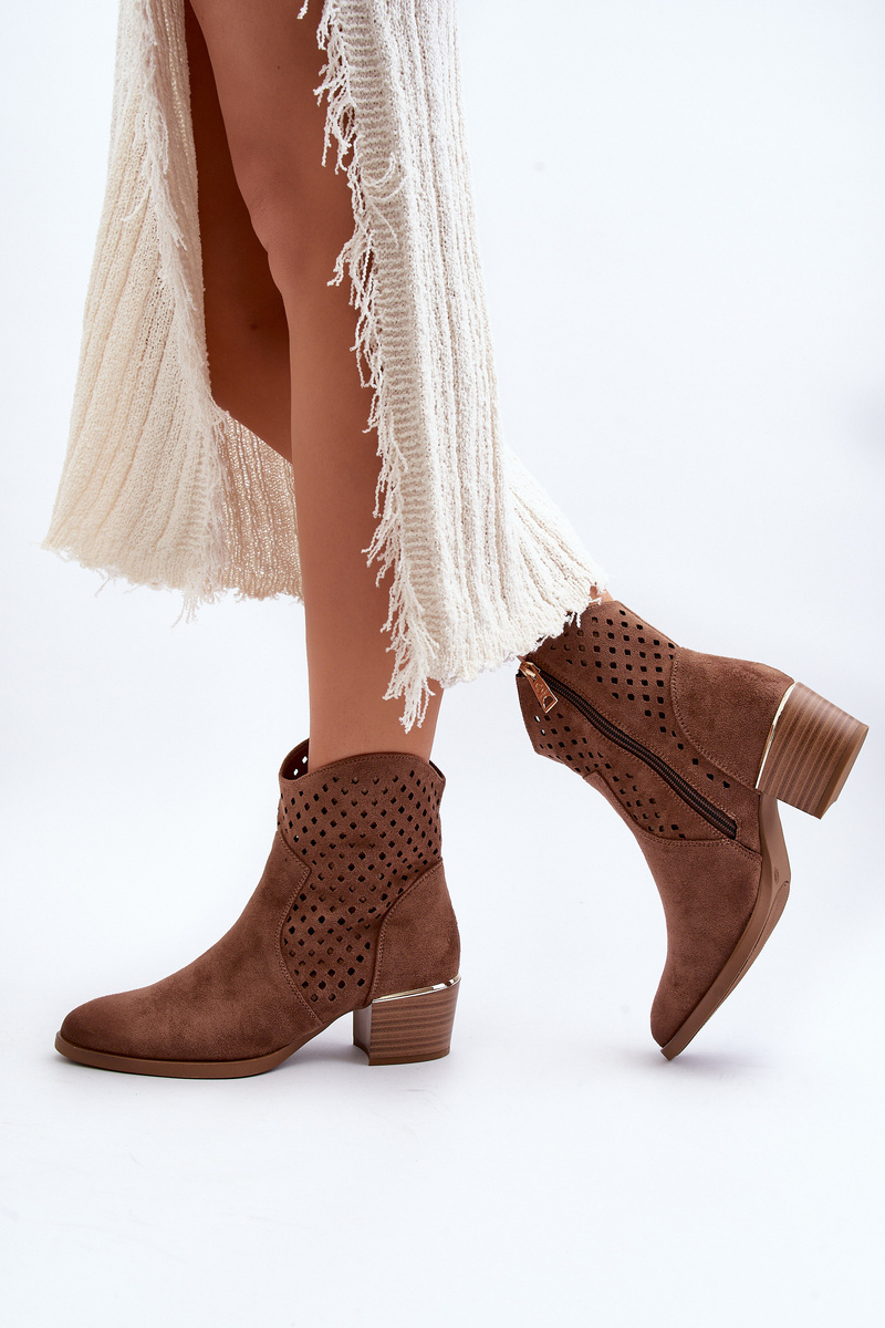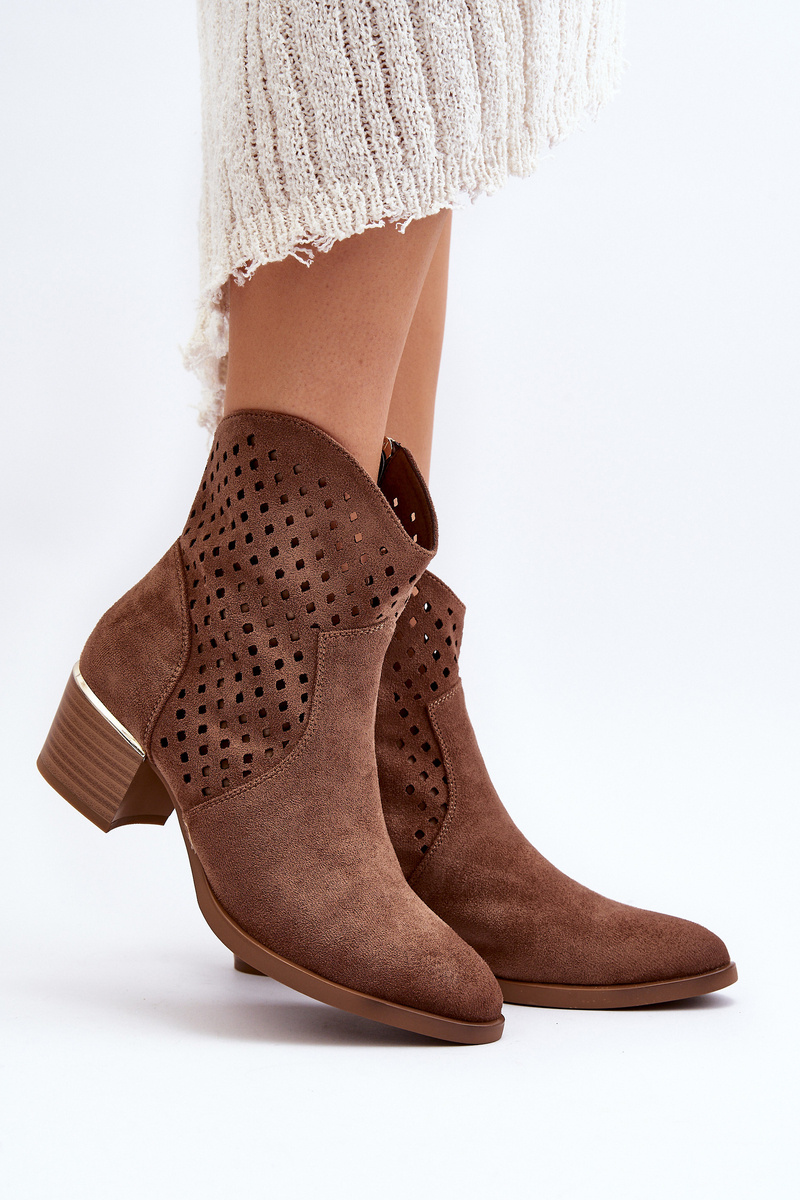 Brown Low Heel Cut-Out Ankle Boots Cilvana