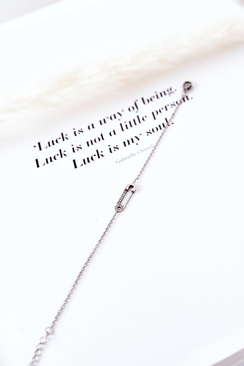 Chain Bracelet With A Safety Pin And Cubic Zirconia Silver
