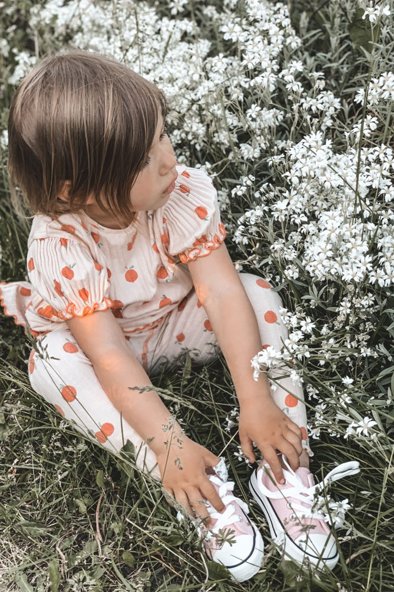 Children's sneakers covered with a delicate glitter. The shoes fit the shape of the foot well thanks to the soft, material uppers. Sneakers have a non-slip sole. Be sure to check out our entire collection of children's sneakers! When choosing a size, please use the size chart.