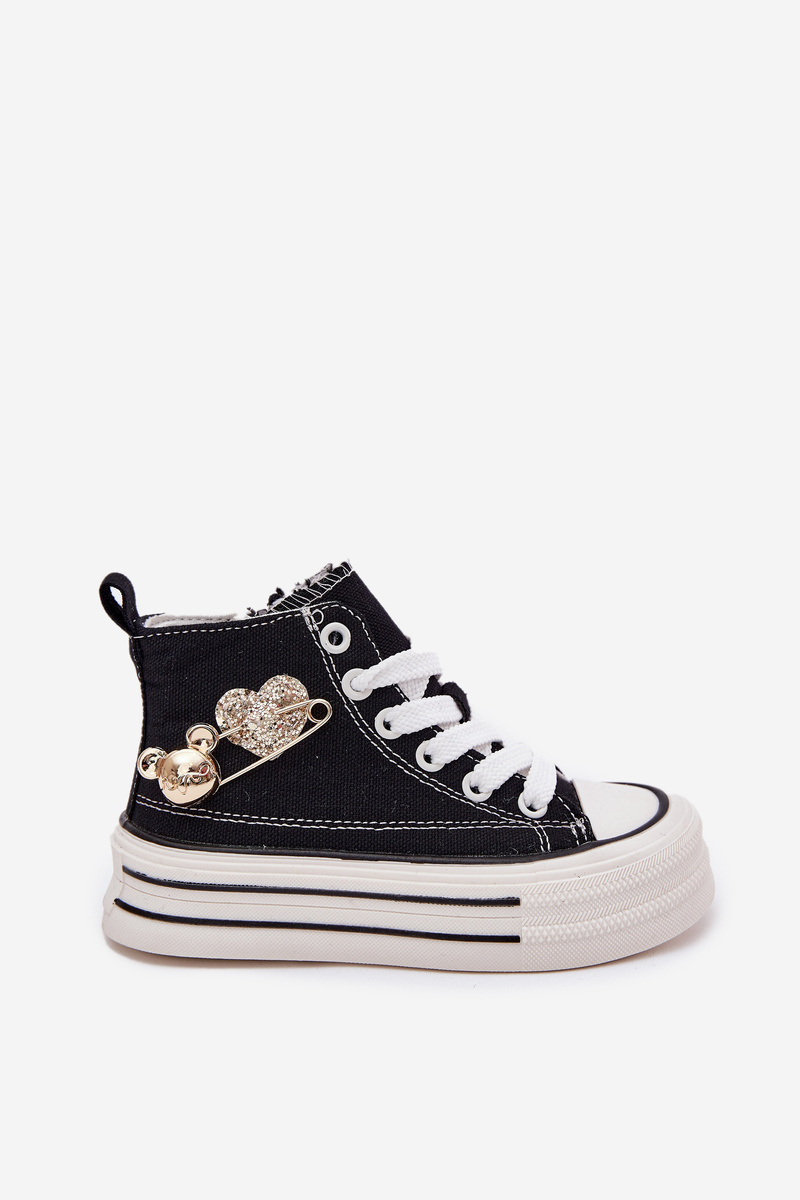 Children's High Sneakers With Gold Decoration Black Elvena