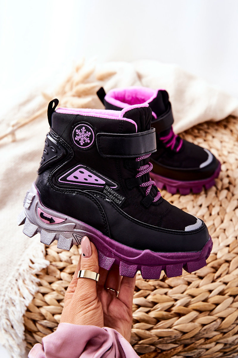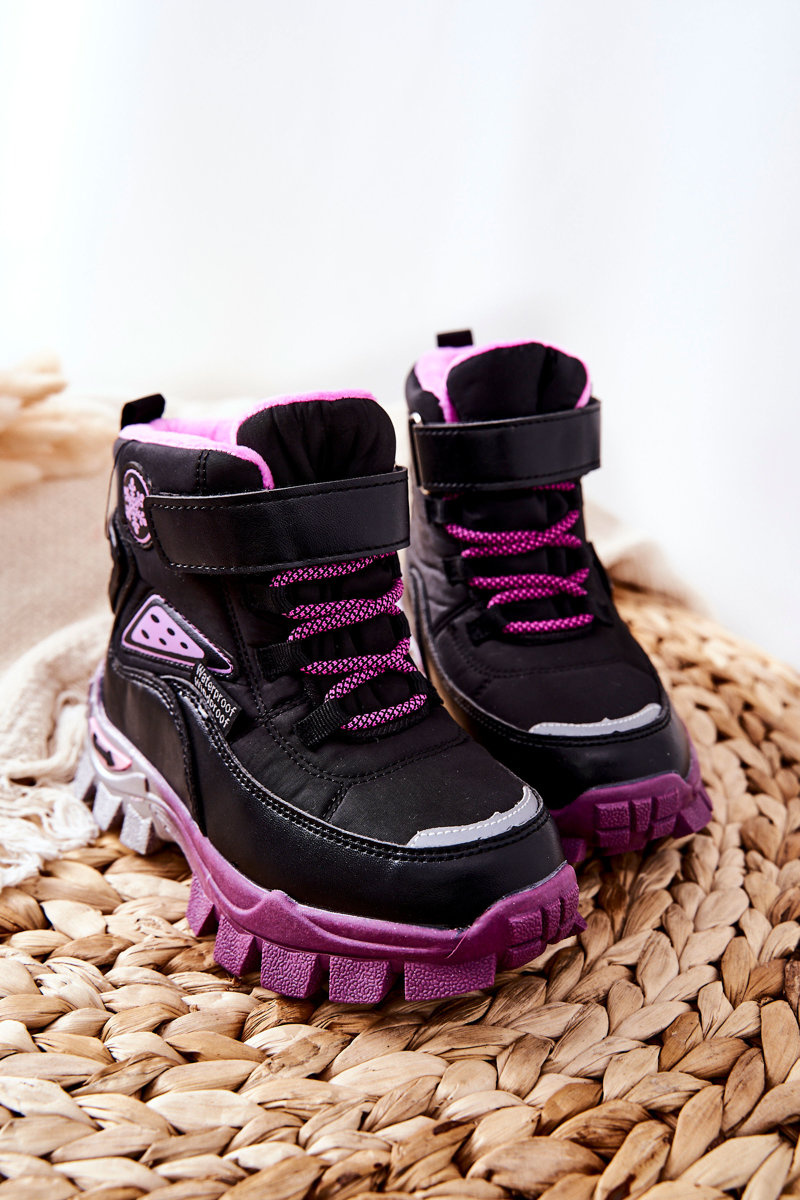 Children's Insulated Snow Boots Velcro Black and Pink Tannis