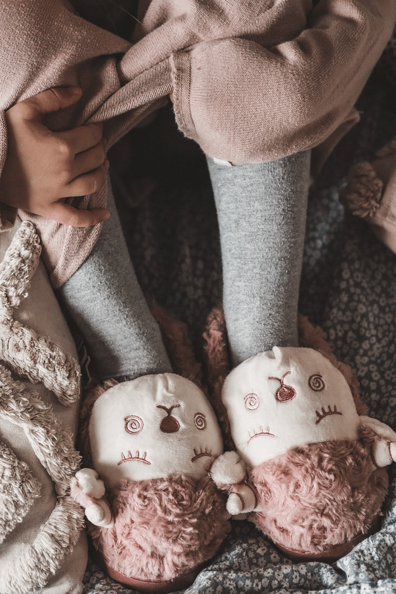 Lightweight and very comfortable children's slip-on slippers. Made of pleasant-to-touch material. A sleeping lamb embroidered on the front of the slippers looks extremely charming. Equipped with a platform, which will protect against the cold ground. Your little one will surely be delighted with a new pair of slippers!For size selection, please refer to the size chart.