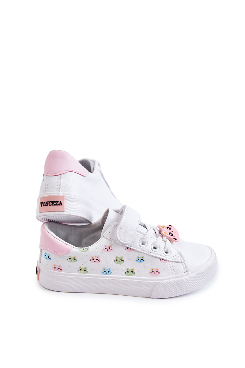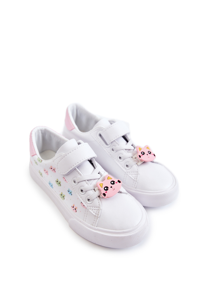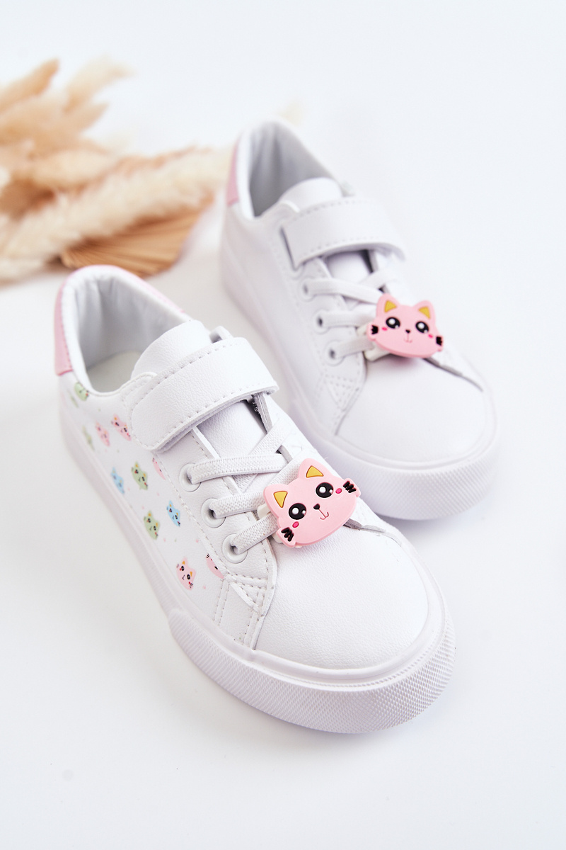 Children's Leather Sneakers With Velcro Print White Bonnie