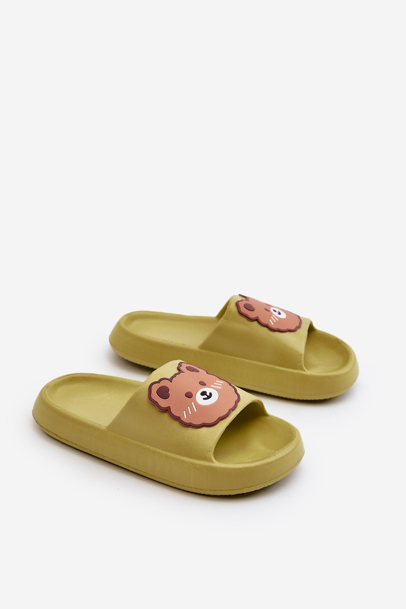 Children's Lightweight Slippers With Bear Green Lindeheta