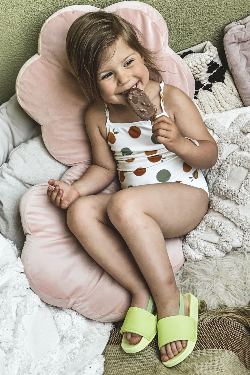 Children's rubber slippers have a profiled insert. A delicate welt will ensure fit to the foot and comfort! When choosing a size, please use the size chart.