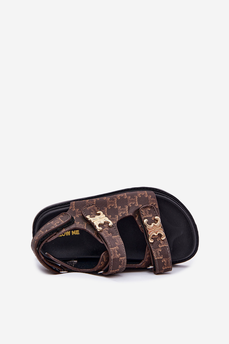 Children's Sandals With Velcro And Golden Details Brown Cavina