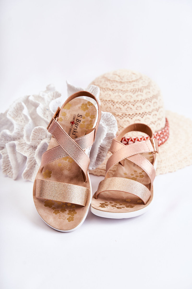 Beautiful children's sandals made with attention to detail. Made of eco leather. The soft Comfort Shoes insole will ensure comfort during use. Velcro fastened shoes, thanks to which your child can easily put on and take off the sandals. Plastic sole. The sandals have exposed toes and heel, which makes them extremely airy. Light and comfortable model. When choosing a size, please use the size chart.