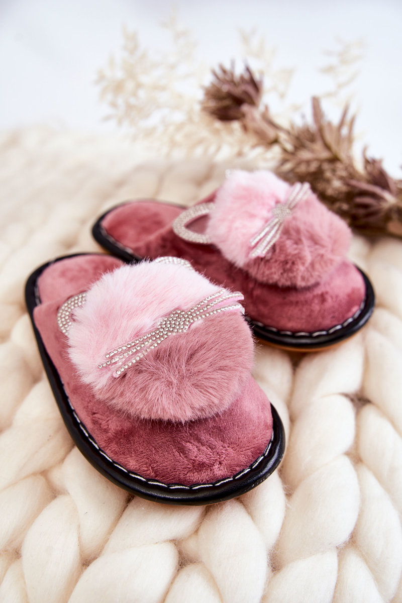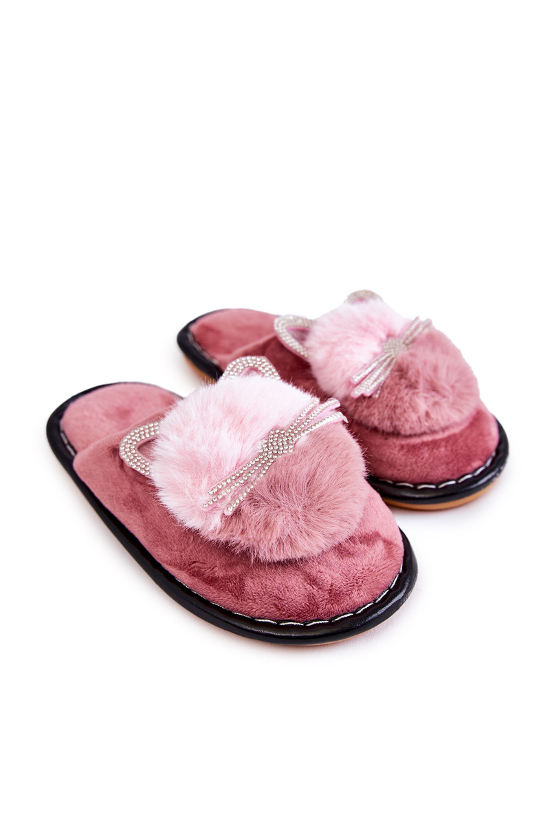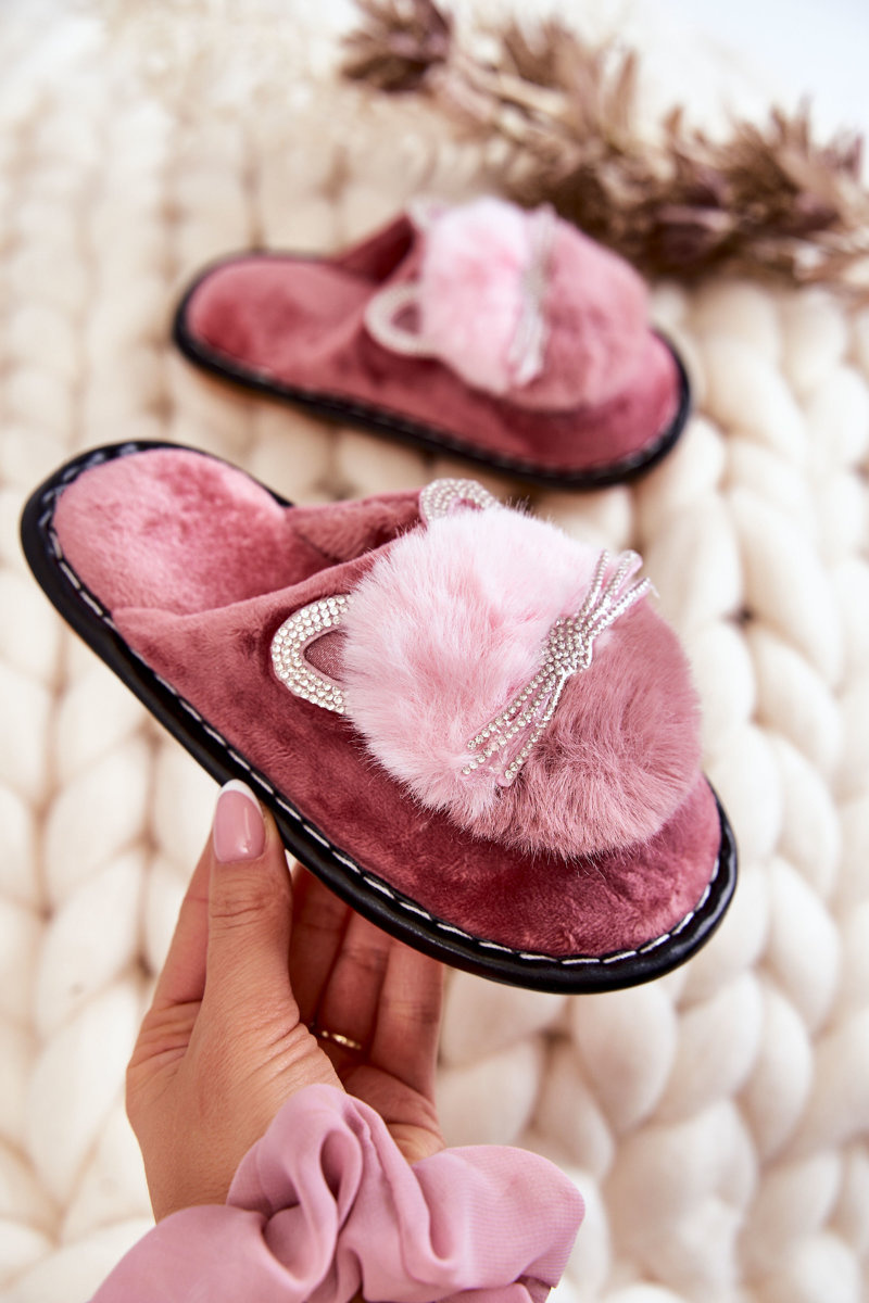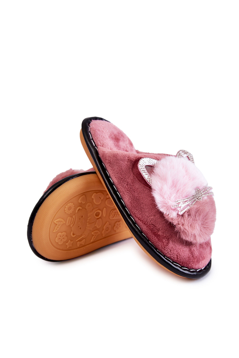 Children's slippers with a kitten and rhinestones Dark pink Carliss