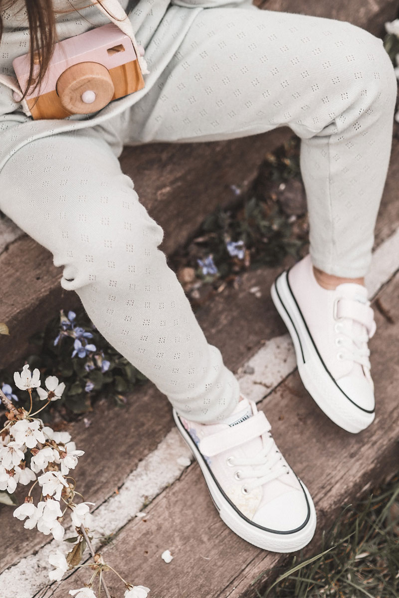 Classic children's sneakers fastened with Velcro. Made of textile material with a rubber reinforcement on the toe. Beautiful print and sewn butterflies on the side of the upper make these shoes look really wonderful. In addition, the shoes have elastic bands imitating laces. The soft insole made of fabric is removable and contoured. The sole is made of rubber material, non-slip. There is a loop on the back of the footwear for easy putting on and taking off the footwear. Sneakers have a slightly stiffened heel. When choosing a size, please use the size chart.