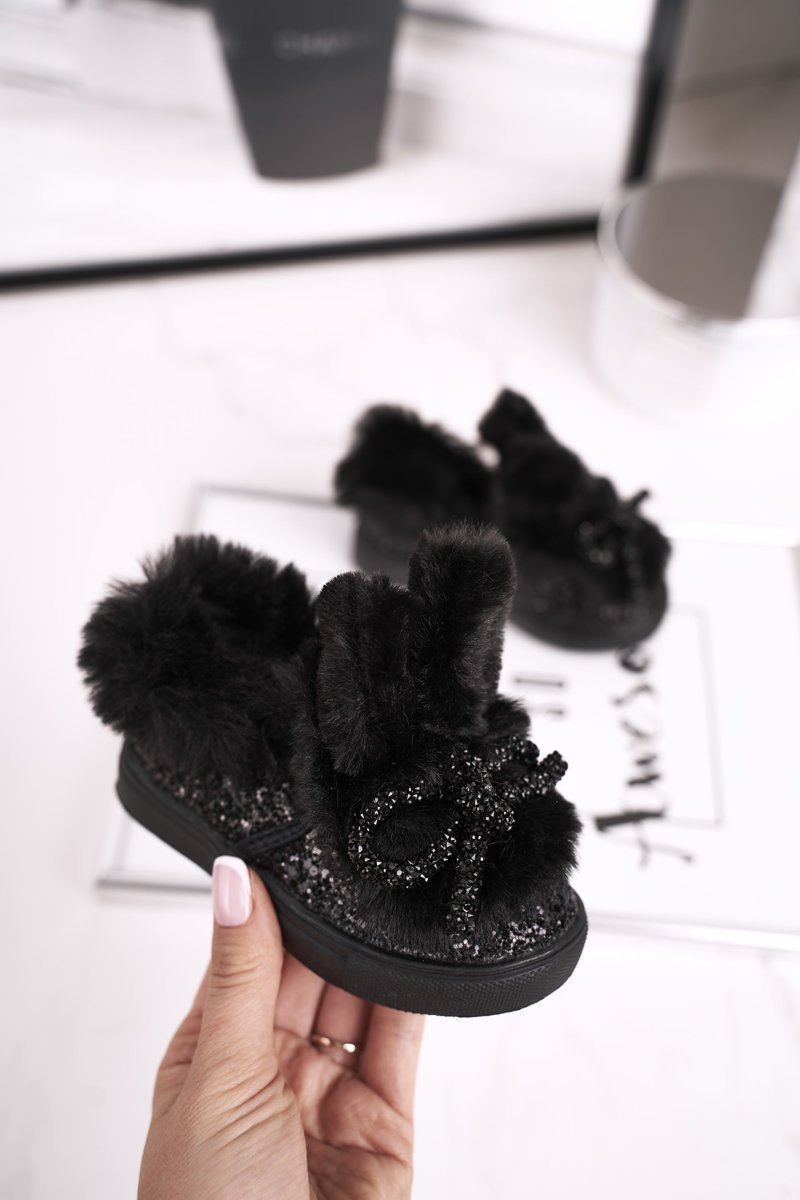 Classic sneakers made of pleasant to the touch fur. Fashionable glittery nose pads, ears and velcro will make it easier for the youngest to dress. The shoes look beautiful and are comfortable. The interior is not insulated. When choosing a size, please use the size chart. Due to the different size groups, sizes 24, 25, 26 can have the same insert length. Sizes 25 and 26 belong to the large size group - they will be slightly wider.