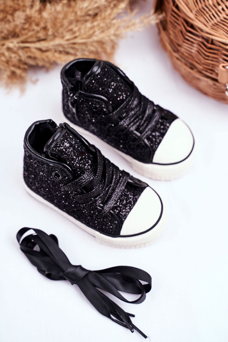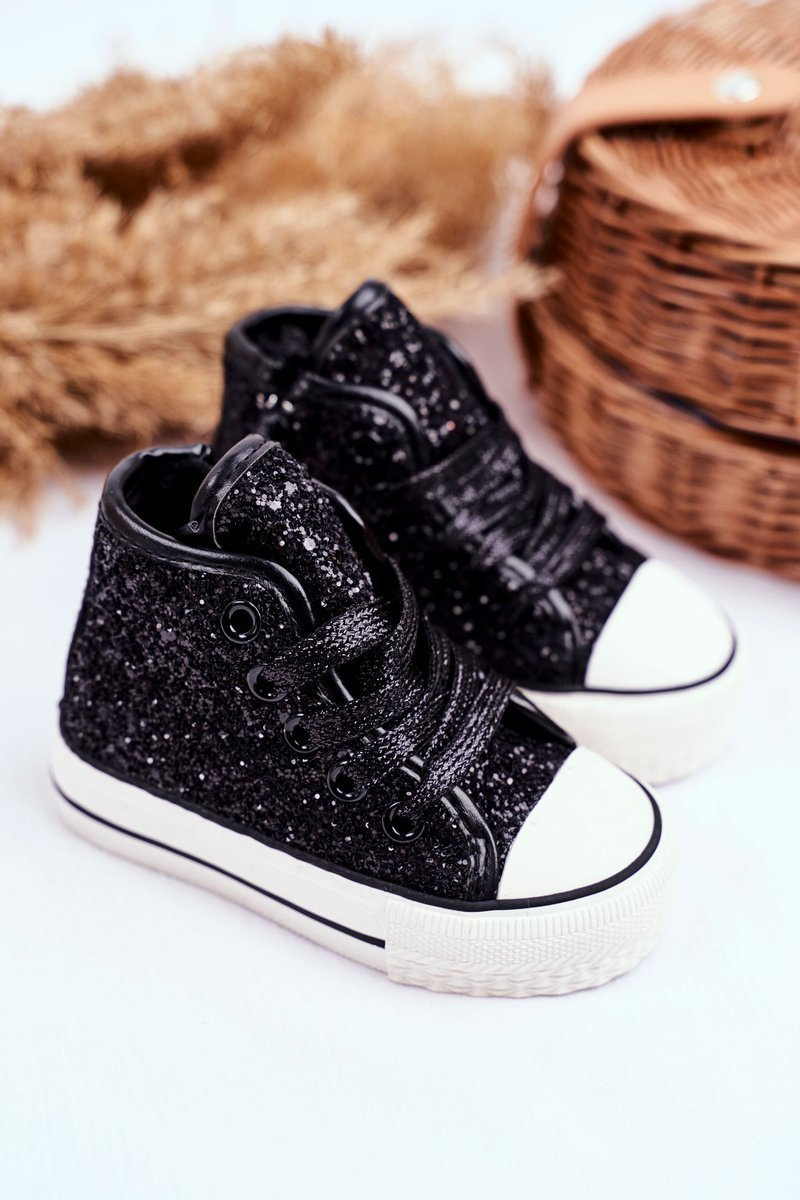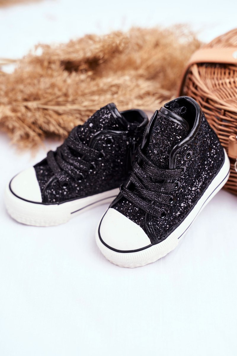 Children's sneakers covered with a delicate glitter. The shoes fit the shape of the foot well thanks to the soft, material uppers. They have a non-slip sole. Be sure to check out our entire collection of children's sneakers! When choosing a size, please use the size chart.