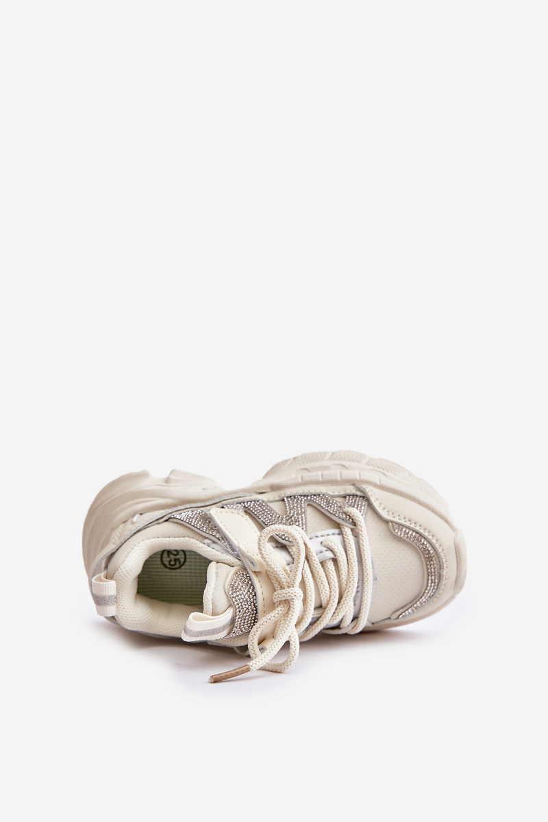 Girls' sneakers adorned with sparkling rhinestones are a combination of style and comfort that will surely appeal to every young fashion lover. Made from high-quality materials, they feature a soft, removable foam insole that provides excellent cushioning and comfort while walking. Fastened with Velcro and additionally feature lacing. Perfect for both everyday wear and special occasions. When choosing a size, please refer to the size chart.