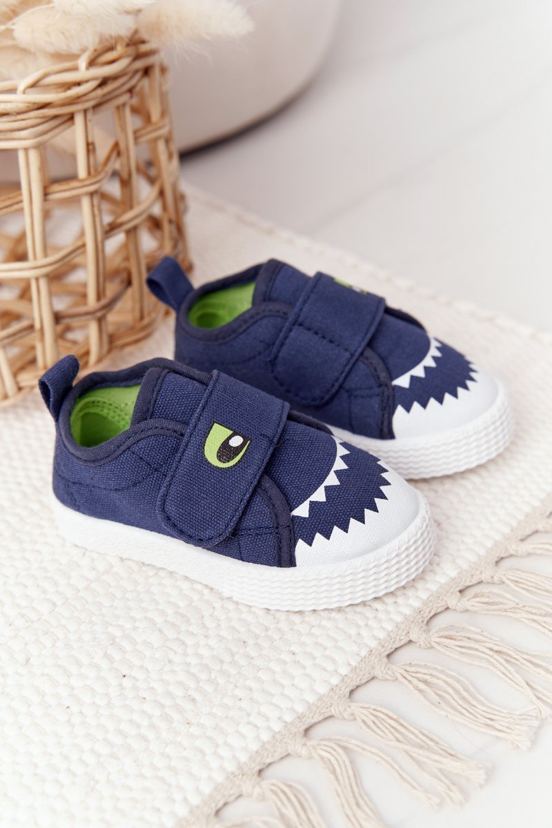 Children's Sneakers With Velcro With A Shark Navy Blue