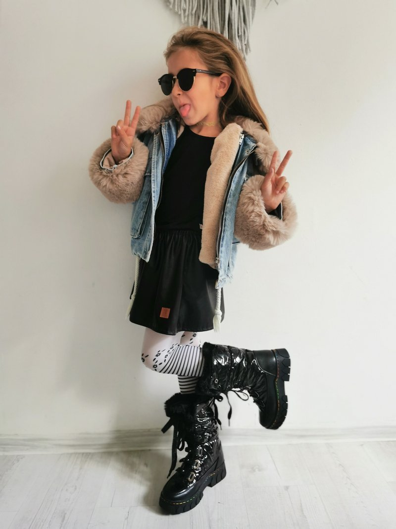 Snow boots are the perfect shoes for cold days. The high upper combined with the interior insulated with thick fur will guarantee perfect insulation against the cold. The rubber around the sole is an additional protection against soaking and additional protection against mechanical damage. Your baby can go crazy at will now! Fashionable snow boots with quilted material will surely delight many fashion fans! When choosing a size, please use the size chart.