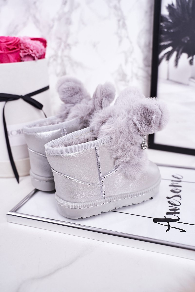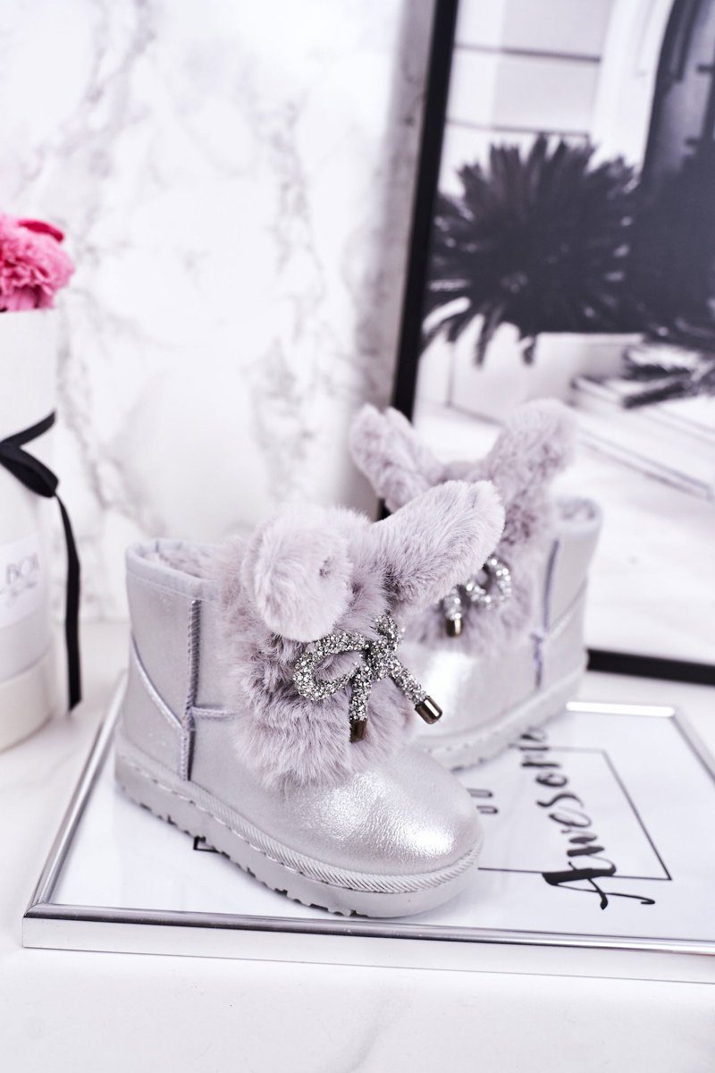 Children's Snow Boots Insulated With Fur With Ears Silver Bunny