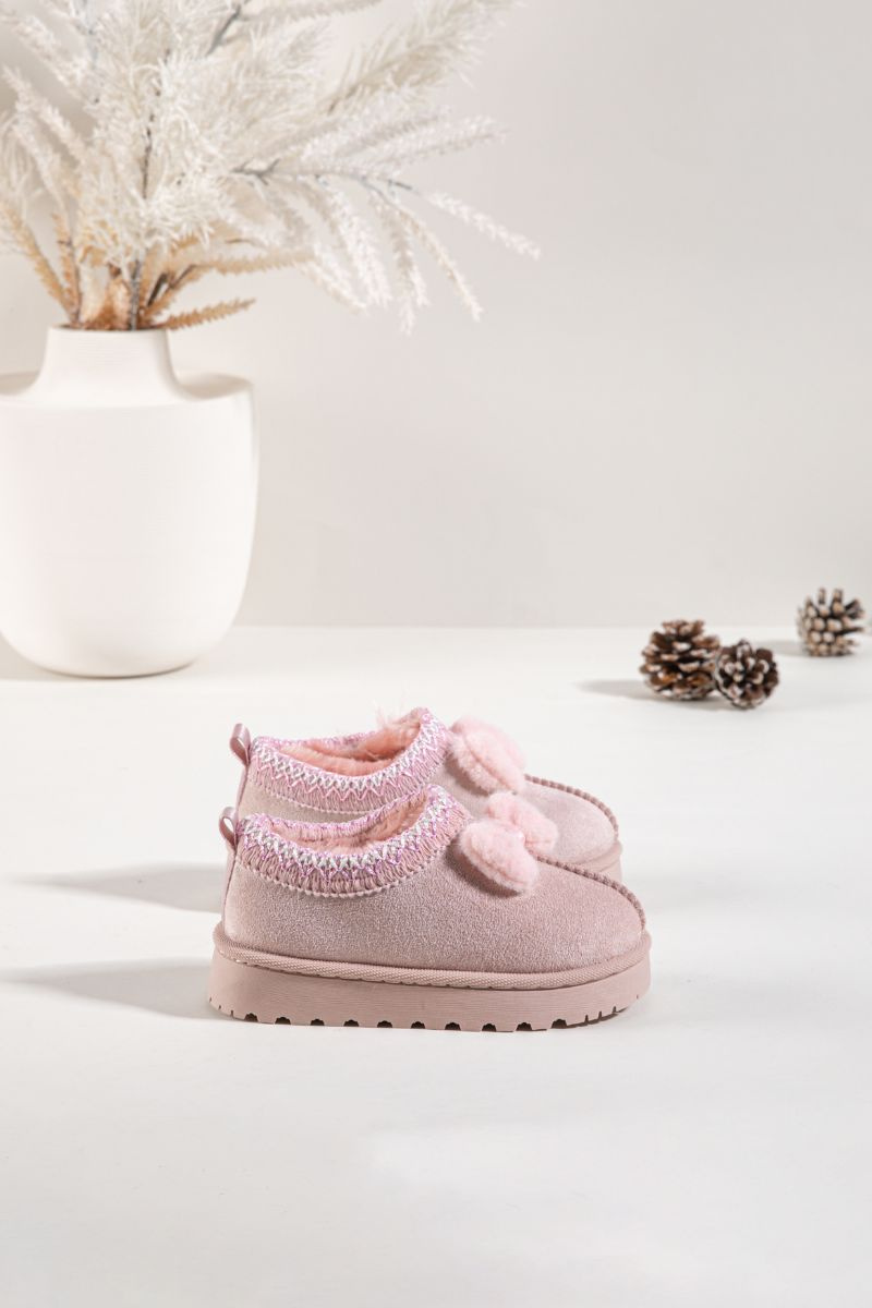 Children's Snow Boots With Embroidery And Bow Pink Daven