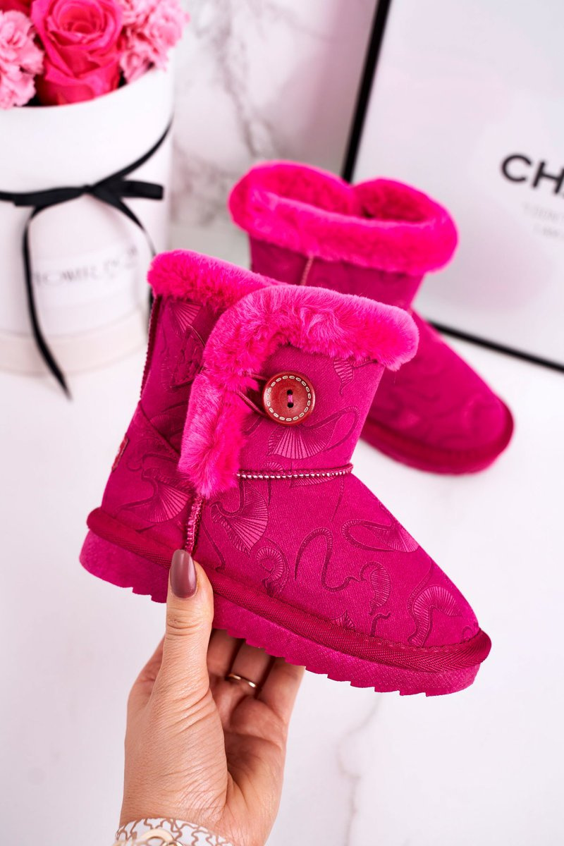 Children's Snow Boots With Fur And Button Fuchsia Kawai