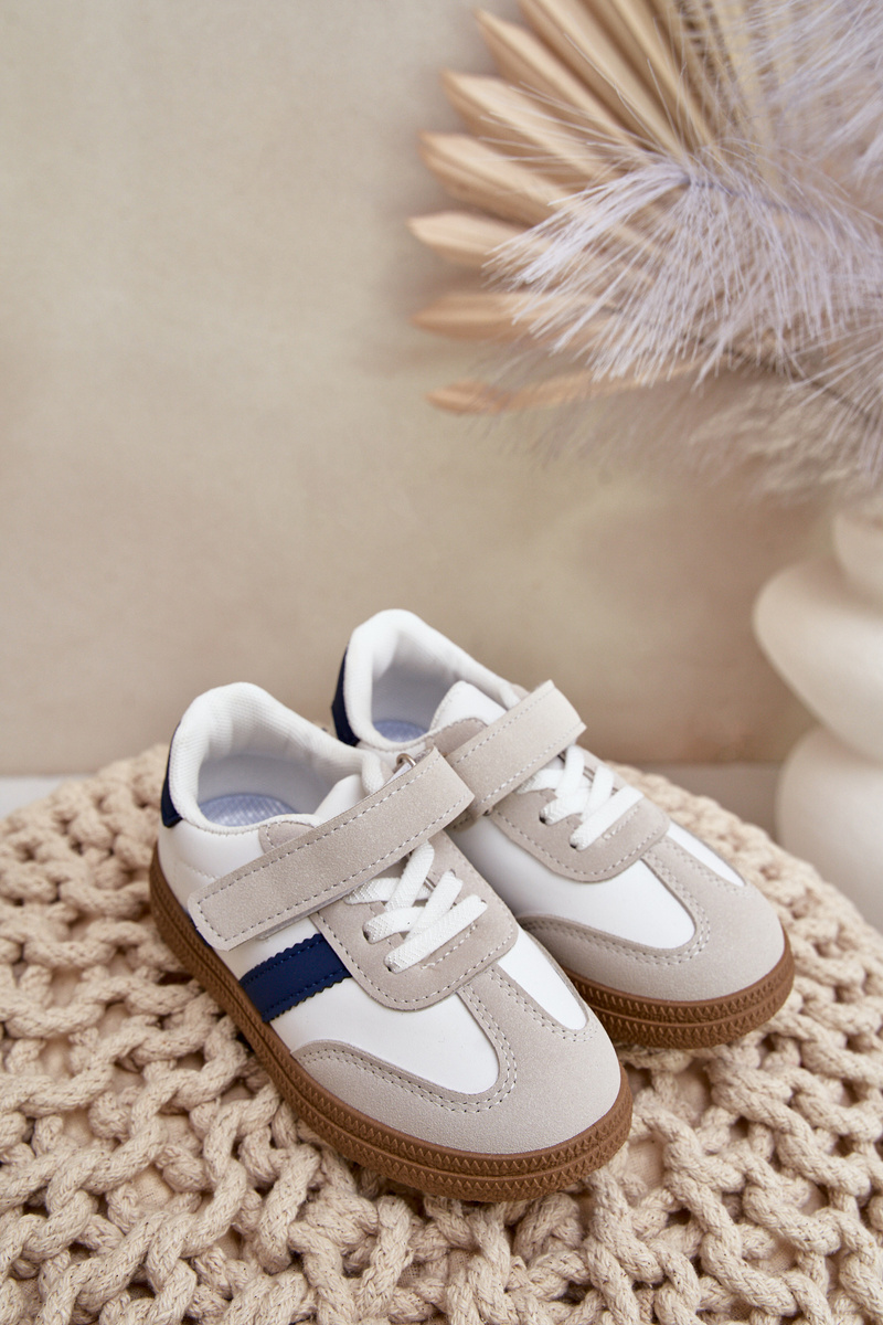 Charming children's sneakers made of eco leather are an excellent choice for everyday wear. The model fastens with a comfortable Velcro strap, with elastic bands mimicking shoelaces, providing quick and easy putting on. The rounded toes add to their classic charm while protecting little feet during play. Perfect for school, kindergarten, and outdoor activities! When choosing a size, please refer to the size chart.