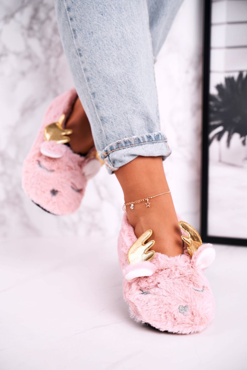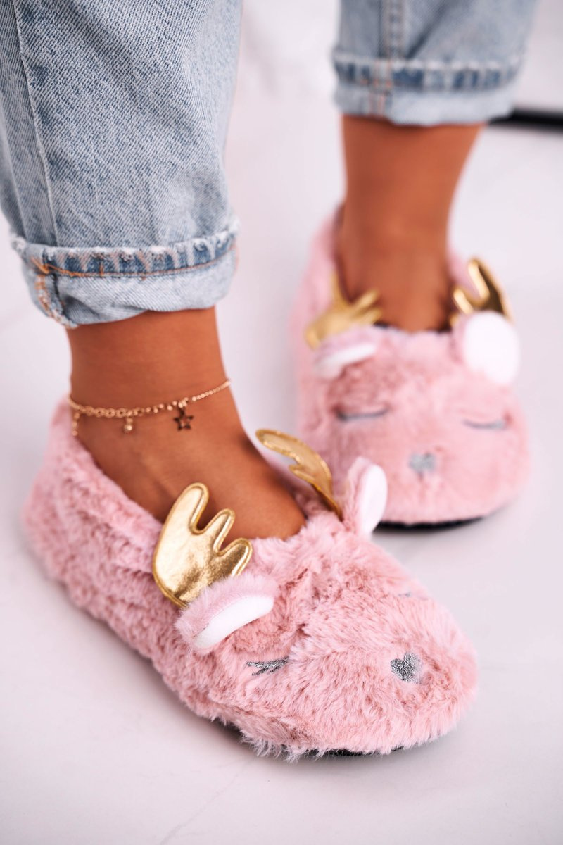Christmas Insulated Furry Slippers Pink Jingle Bells