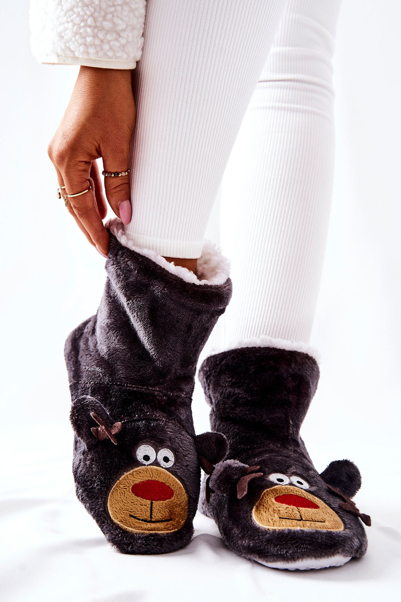 Beautiful Christmas slippers made of pleasant to the touch material. They have a sheepskin insulation inside. The slippers are perfect for the home. They have a sole underneath, which will additionally protect from the cold. Make a gift for yourself or someone close to you! When choosing the size, please refer to the size table.