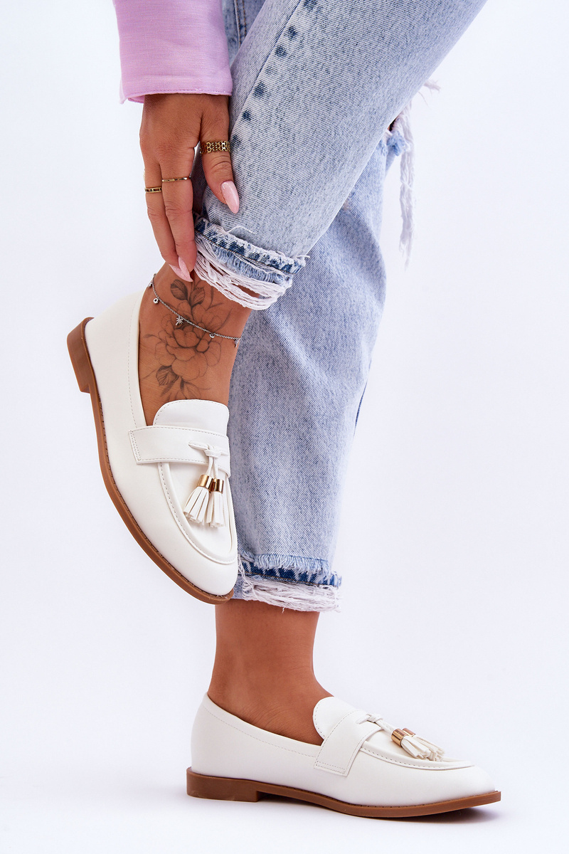 Women's loafers are made of eco leather. This model has decorative fringes on the front. Loafers were set on a flat heel. The soft insole will ensure comfort when using the footwear. This model has a slightly rounded nose. Loafers will be great in many stylizations in the spring and autumn season! When choosing a size, please refer to the size chart.