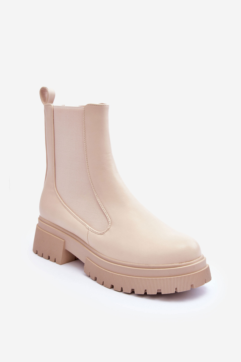 Classic Leather Ankle Boots Beige Isminna