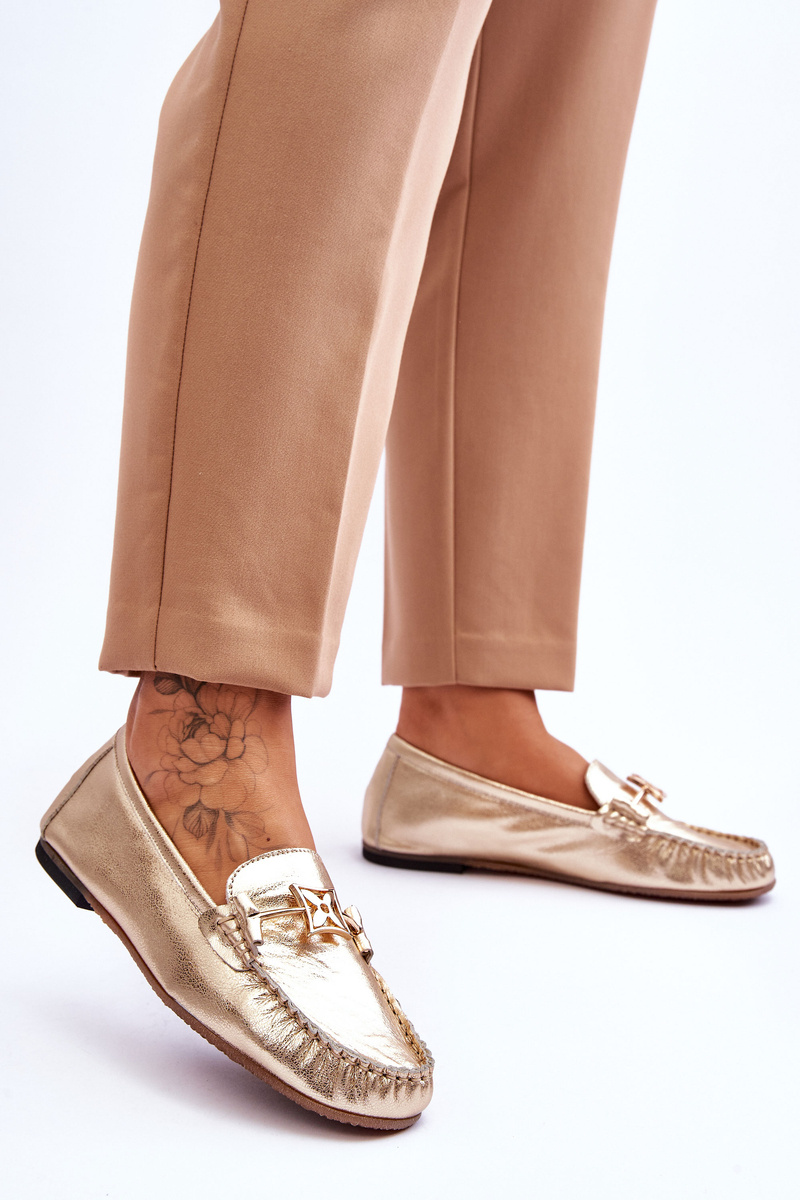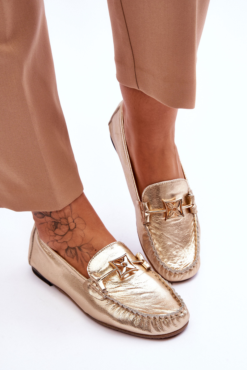 Classic Leather Loafers With Decoration Laura Messi 2459 Gold