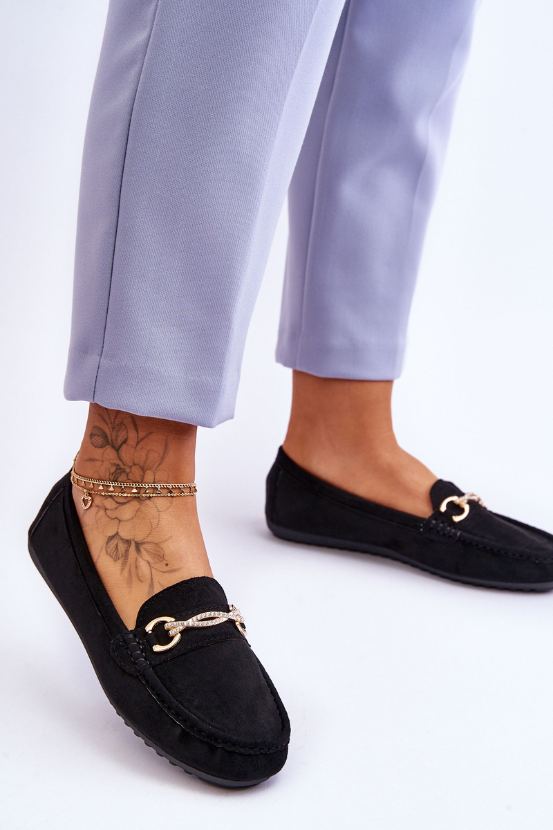 Classic Suede Loafers With Embellishment Black Amera