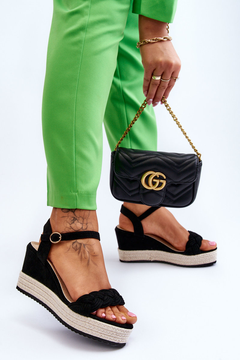These fashionable women's sandals are made of eco leather. They have an adjustable strap with a buckle. The shoes are set on a heel in the form of a wedge heel and a platform with a decorative braid. Eco leather insole will take care of your comfort and convenience. Sandals are great for all kinds of important meetings, celebrations or for everyday styling! When choosing a size, please refer to the size chart.