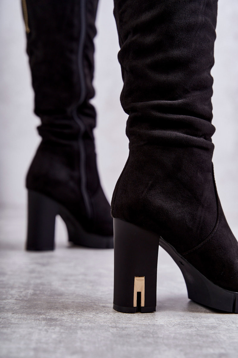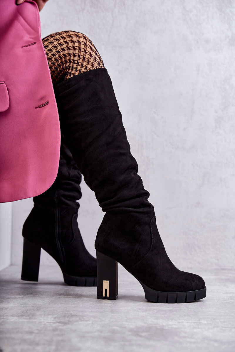 Classic Suede Zipper Boots Black Laylah