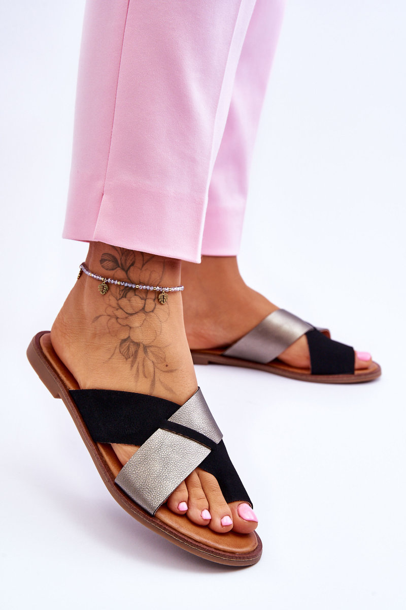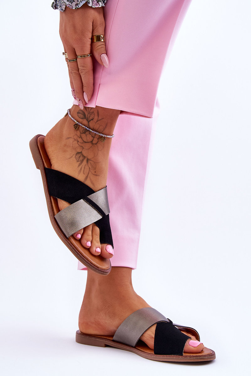 Classic Women's Leather Slippers Black Platinum Nancy