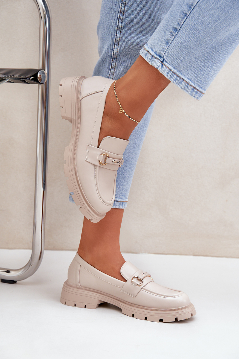Classic Women's Moccasins Made Of Eco Leather Beige Savethira