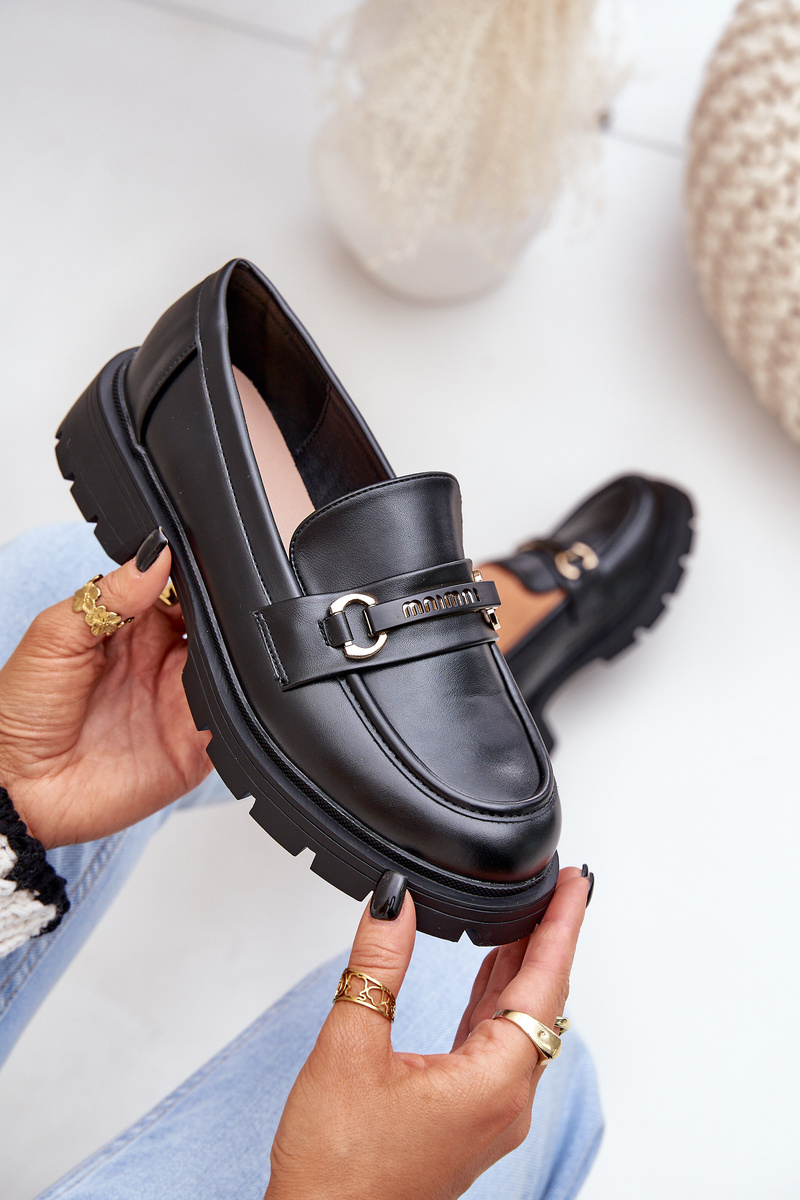 Classic Women's Moccasins Made Of Eco Leather Black Savethira