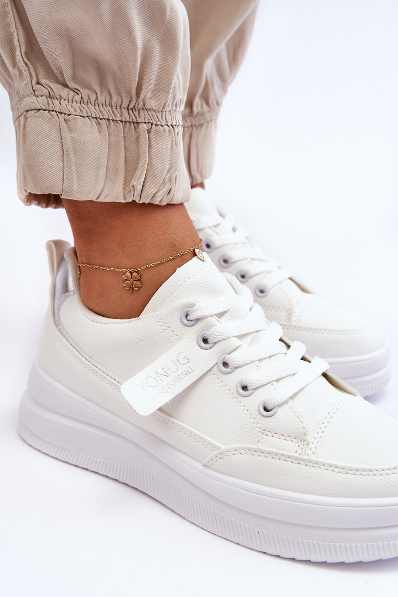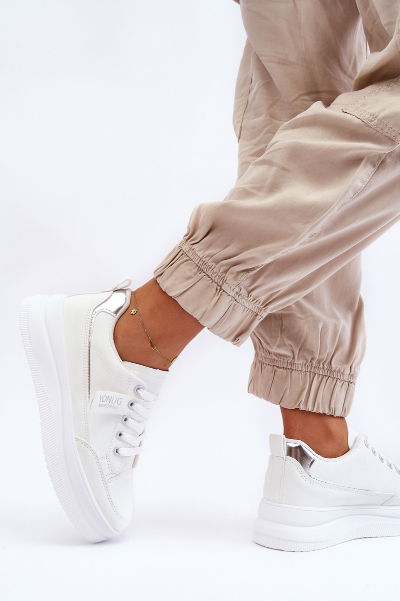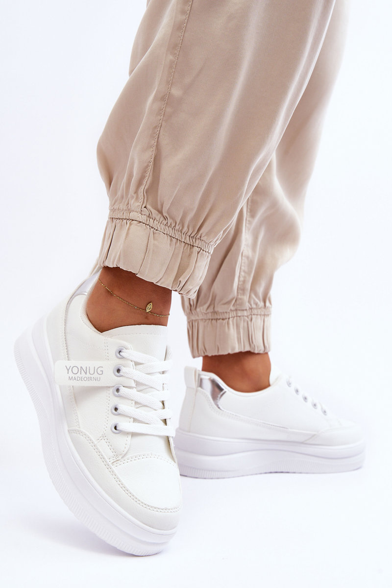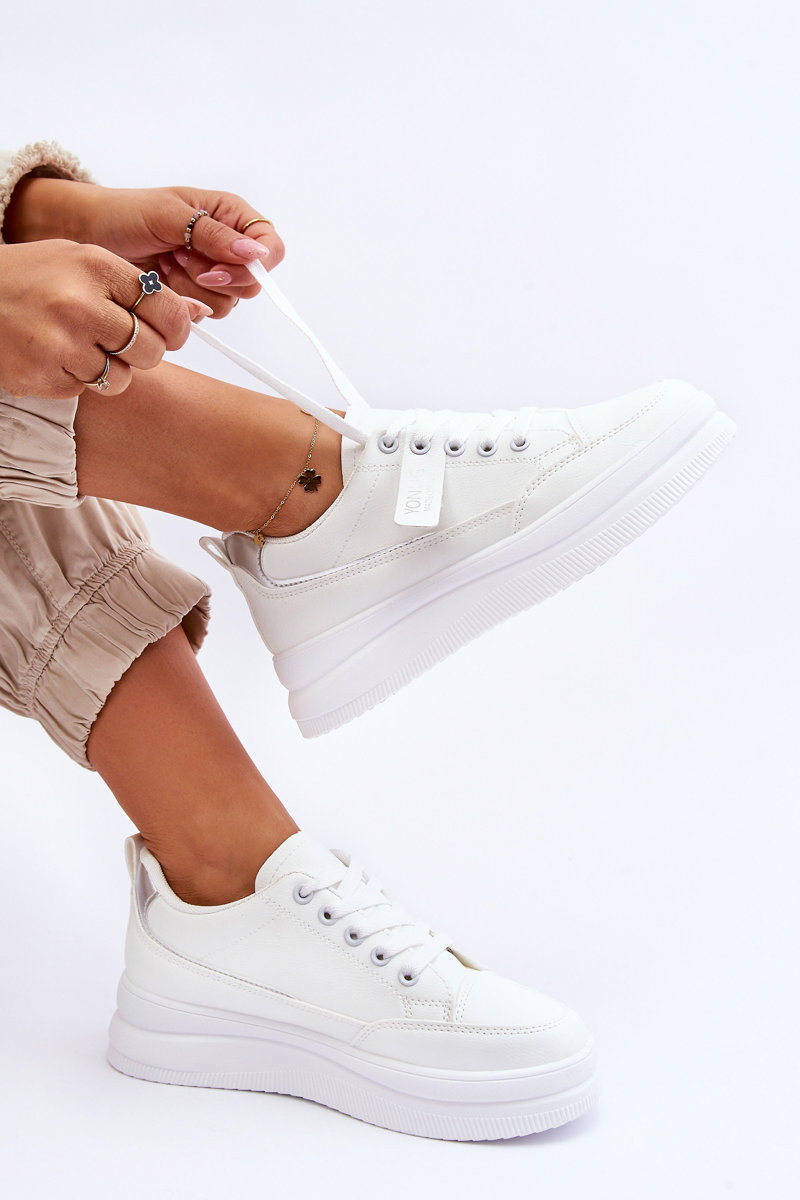 These shoes will certainly prove themselves during everyday activities! They are made of eco leather. They have a slightly stiffened heel. Sneakers on the platform have a sole made of plastic. This model is classically laced. When choosing a size, please refer to the size chart.