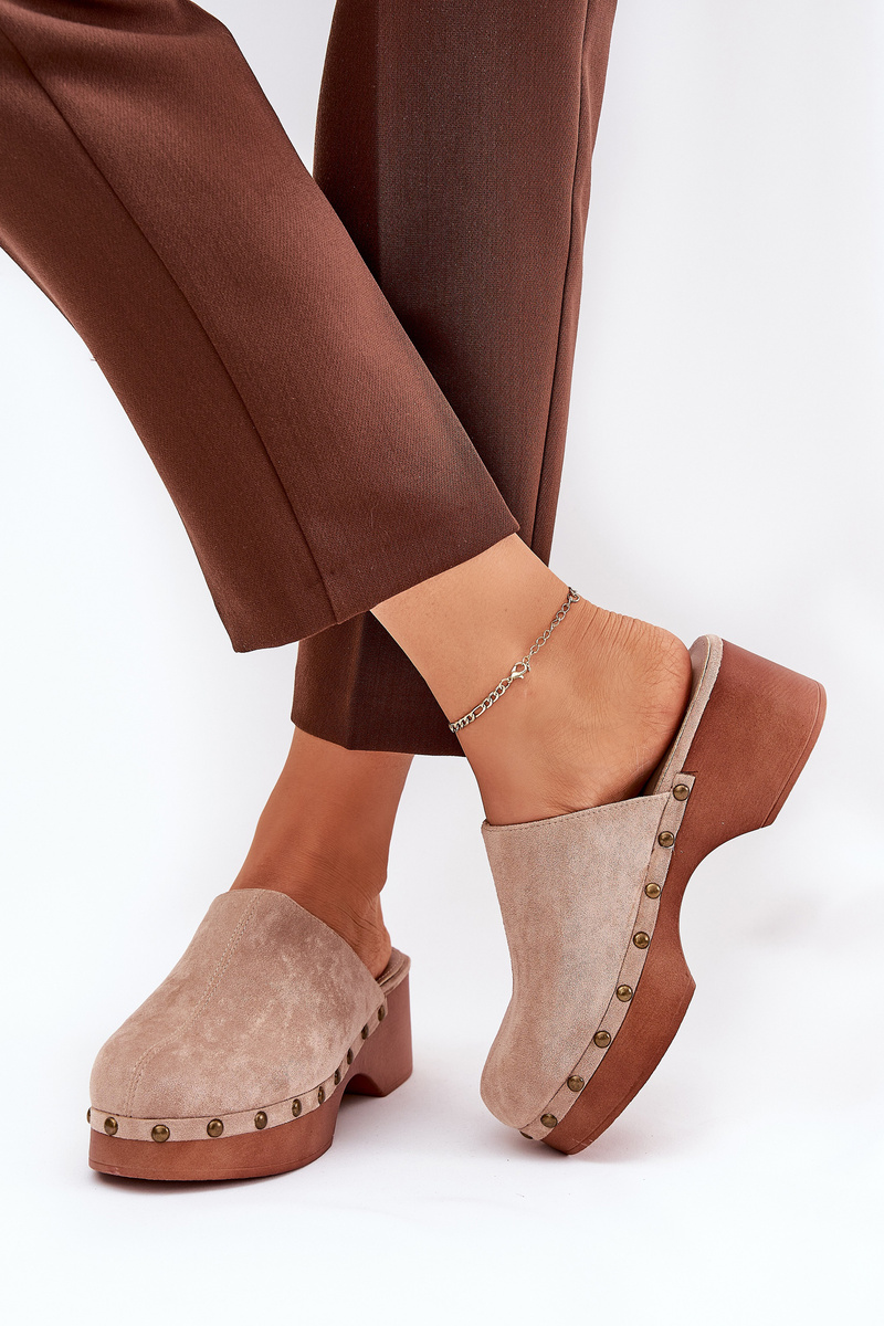 Clogs Women's Slippers With Studs Eco Suede Beige Ellason