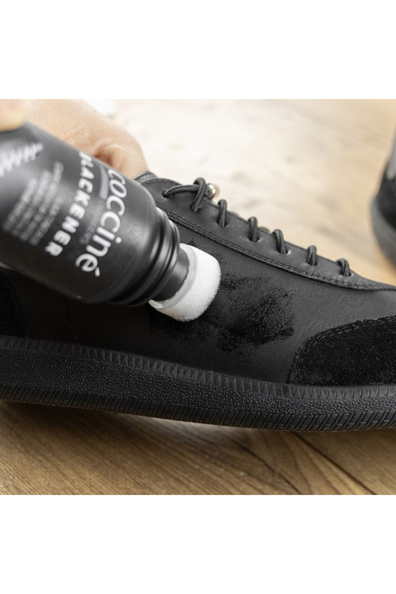 SNEAKERS BLACKENER is a black liquid corrector that perfectly conceals minor scuffs on leather. It evens out and deepens the black color, restoring shine. For black smooth leathers, synthetic materials, and soles.