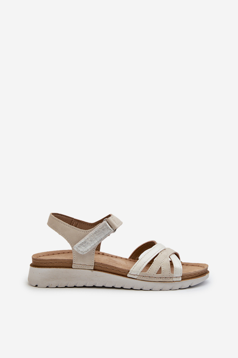Comfortable And Lightweight Women's Sandals With Velcro Inblu CN000041 Beige-Silver