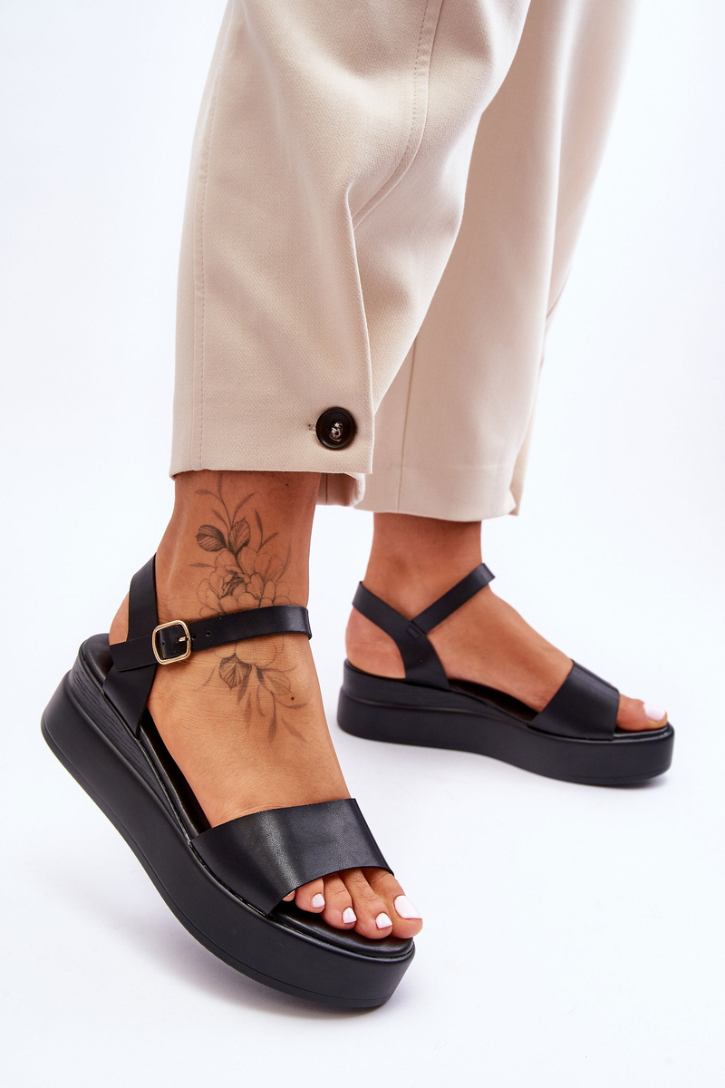 Perfect sandals for hot days! This model was mounted on a wedge and platform. Sandals are fastened with an adjustable strap with a buckle. The soft insole made of eco leather will ensure comfortable use even throughout the day. This model should be in your wardrobe! When choosing a size, please refer to the size chart.