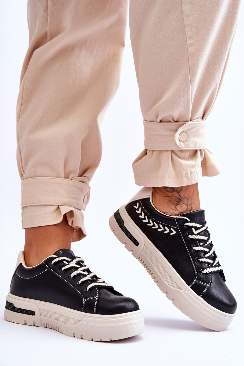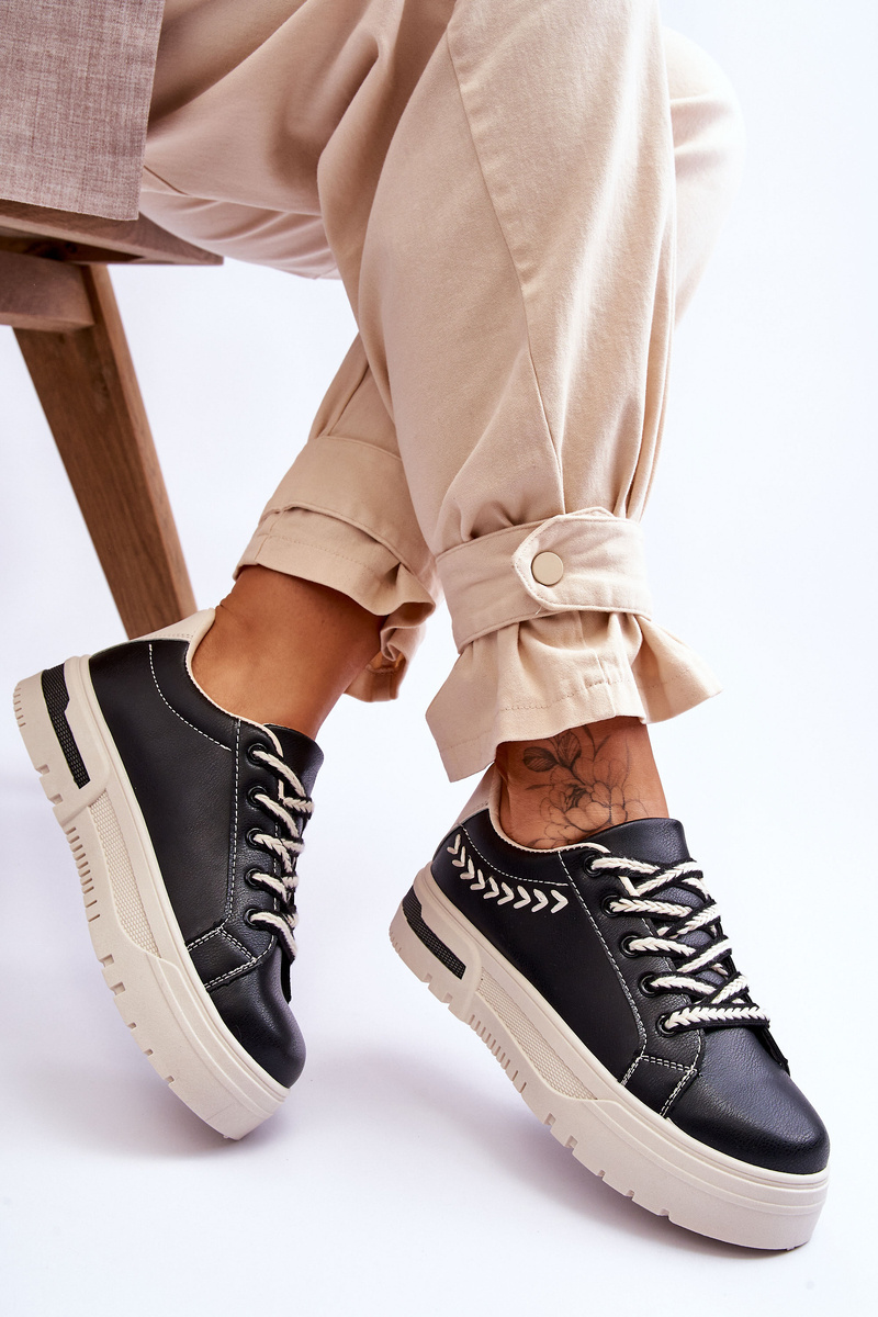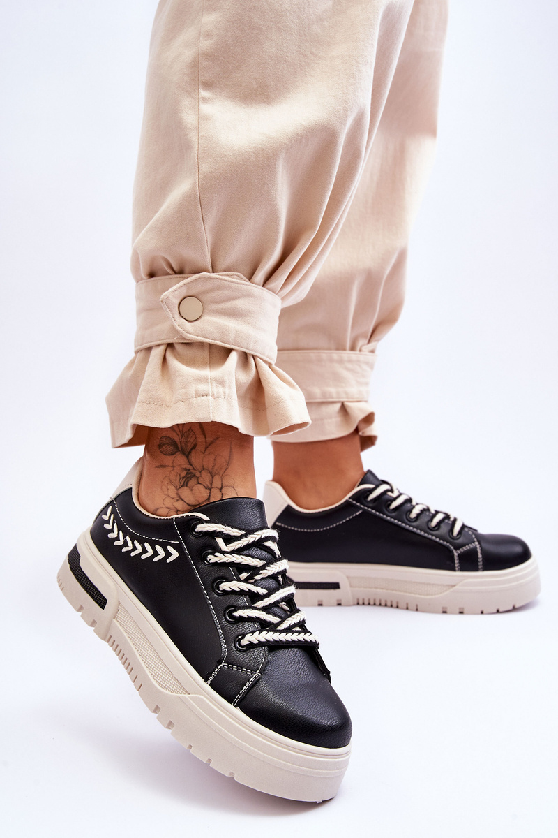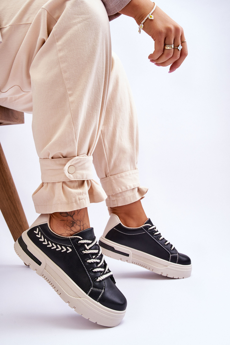 Comfortable Women's Sport Shoes On The Platform Black And Beige Devan